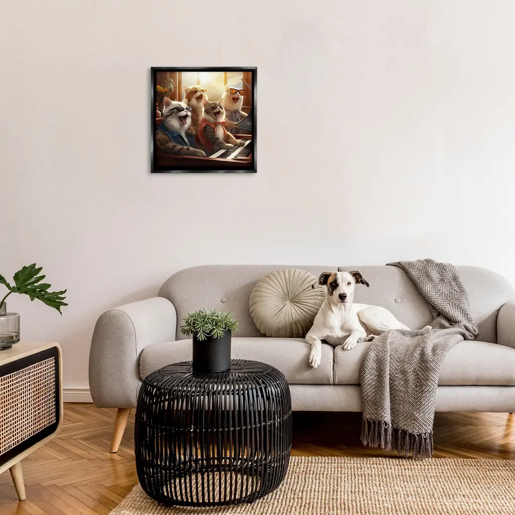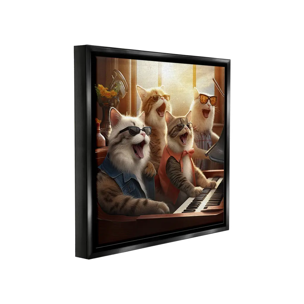Elevate your home or office to the next level with Stupell Framed Floating Canvas Wall Art. Our premium hand-stretched canvas is mounted securely into a sturdy lightweight frame. The museum-style gap between the wrapped canvas and the box frame gives the illusion of floating artwork. Stupell Wall Art is made in the USA.Features: Dimensions: 18 x 1.7 x 18 Frame, 17 x 1.5 x 17 Canvas ArtFloating Frame Canvas Products are available in sizes 18"x18" and 25"x25". All Floating Frame Canvas Products have a 1.7" Depth.Wall Art is Ready to Hang with Hardware Free Hanging. No Installation required. For Easy Set Up Lean or Layer Artwork on Shelf or Against Wall. Artwork is Permently Fixed into the Frame.Our elevated 1.7" Thick Floating Frame is the perfect complement to our canvas style Wall Art. We use only the highest quality inks in house with industry leading printing solutions. Canvas is hand stretched over a durable wood foundation and then mounted securly into a Modern Box Frame. Made in the USA.Artwork Relates To: Animal, Cat, Mammal, Pet, Humor, Funny, Music, Musician, PianoDesign by Jim Baldwin
