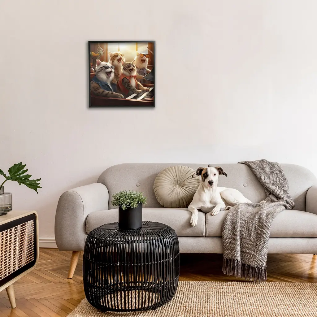 Add dimension to any room with our textured Framed Giclee Artwork. Our framed artwork is securely mounted into a 1.5-inch thick wood grain frame and ready to hang. Frames are available in three alluring styles: black, gray farmhouse and white. In addition, you should check out our oversized options if you want a statement piece. Stupell Wall Art is made in the USA.Features: Dimensions: 12 x 1.5 x 12 FramedFramed Giclee Product Sizes Include 12"x12", 17"x17", and 24"x24". Framed Giclee Products have a 1.5" Depth. Wall Art is Ready to Hang with Hardware Free Hanging. No installation required. For Easy Set Up Lean or Layer Artwork on Shelf or Against Wall.Our giclée prints are carefully mounted on a durable MDF backing, and then perfectly finished in a 1.5 inch thick woodgrain frame. Mounted frame colors include black, gray farmhouse and white. Made In USA.Artwork Relates To: Animal, Cat, Mammal, Pet, Humor, Funny, Music, Musician, PianoDesign by Jim Baldwin