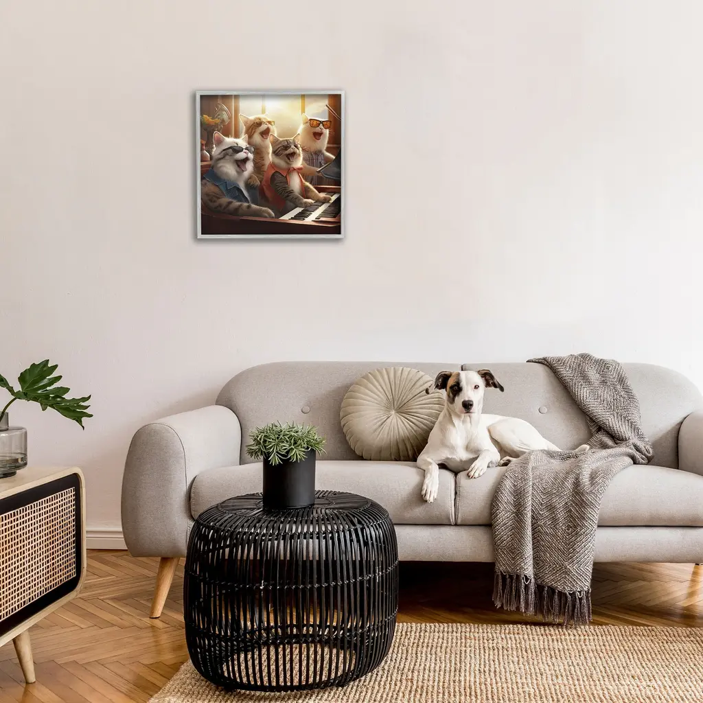 Add dimension to any room with our textured Framed Giclee Artwork. Our framed artwork is securely mounted into a 1.5-inch thick wood grain frame and ready to hang. Frames are available in three alluring styles: black, gray farmhouse and white. In addition, you should check out our oversized options if you want a statement piece. Stupell Wall Art is made in the USA.Features: Dimensions: 12 x 1.5 x 12 FramedFramed Giclee Product Sizes Include 12"x12", 17"x17", and 24"x24". Framed Giclee Products have a 1.5" Depth. Wall Art is Ready to Hang with Hardware Free Hanging. No installation required. For Easy Set Up Lean or Layer Artwork on Shelf or Against Wall.Our giclée prints are carefully mounted on a durable MDF backing, and then perfectly finished in a 1.5 inch thick woodgrain frame. Mounted frame colors include black, gray farmhouse and white. Made In USA.Artwork Relates To: Animal, Cat, Mammal, Pet, Humor, Funny, Music, Musician, PianoDesign by Jim Baldwin