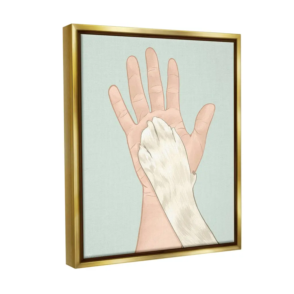 Elevate your home or office to the next level with Stupell Framed Floating Canvas Wall Art. Our premium hand-stretched canvas is mounted securely into a sturdy lightweight frame. The museum-style gap between the wrapped canvas and the box frame gives the illusion of floating artwork. Stupell Wall Art is made in the USA.Features: Dimensions: 17 x 1.7 x 21 Frame, 16 x 1.5 x 20 Canvas ArtFloating Frame Canvas Products are available in sizes 17"x21" and 25"x31". All Floating Frame Canvas Products have a 1.7" Depth.Wall Art is Ready to Hang with Hardware Free Hanging. No Installation required. For Easy Set Up Lean or Layer Artwork on Shelf or Against Wall. Artwork is Permently Fixed into the Frame.Our elevated 1.7" Thick Floating Frame is the perfect complement to our canvas style Wall Art. We use only the highest quality inks in house with industry leading printing solutions. Canvas is hand stretched over a durable wood foundation and then mounted securly into a Modern Box Frame. Made in the USA.Artwork Relates To: Hand, Symbol, High Five, Cat, Paw, Pet, DogDesign by Tara Royle