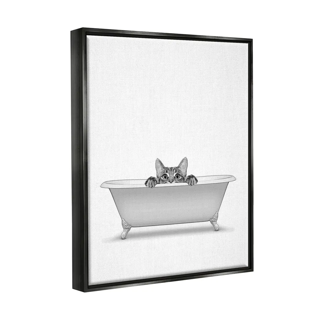 Stupell Cat Peeking Bathroom Tub Framed Floater Canvas Wall Art By Annalisa Latella - 16 X 20 - Black