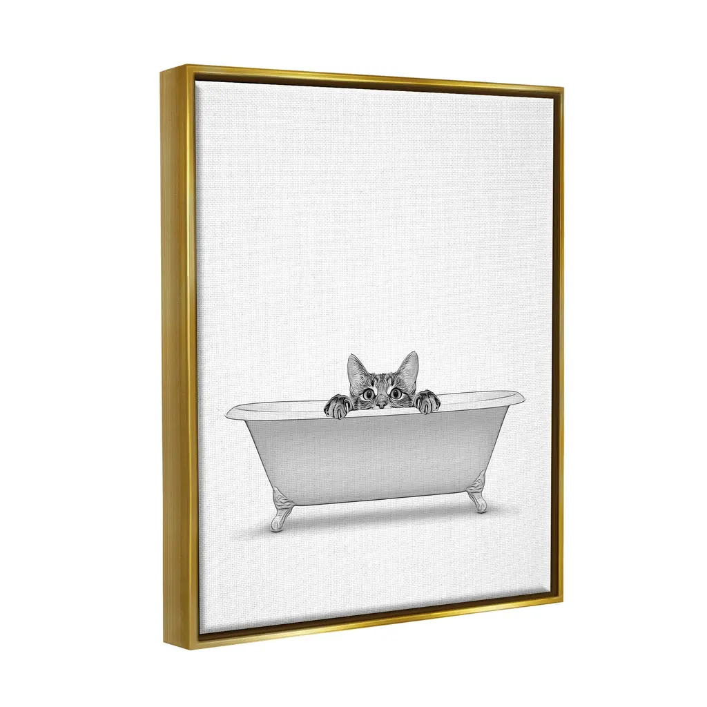 Stupell Cat Peeking Bathroom Tub Framed Floater Canvas Wall Art By Annalisa Latella - 16 X 20 - Gold