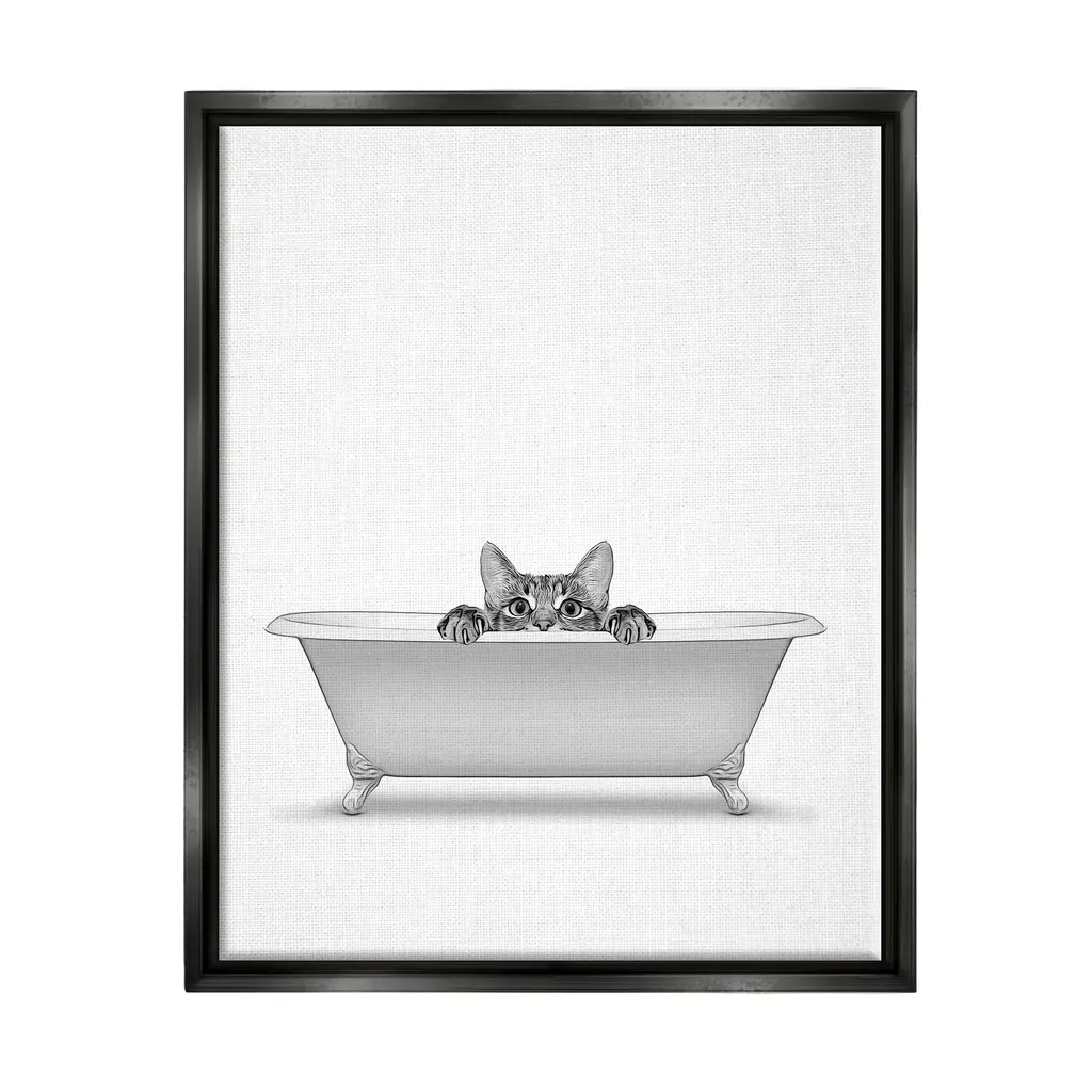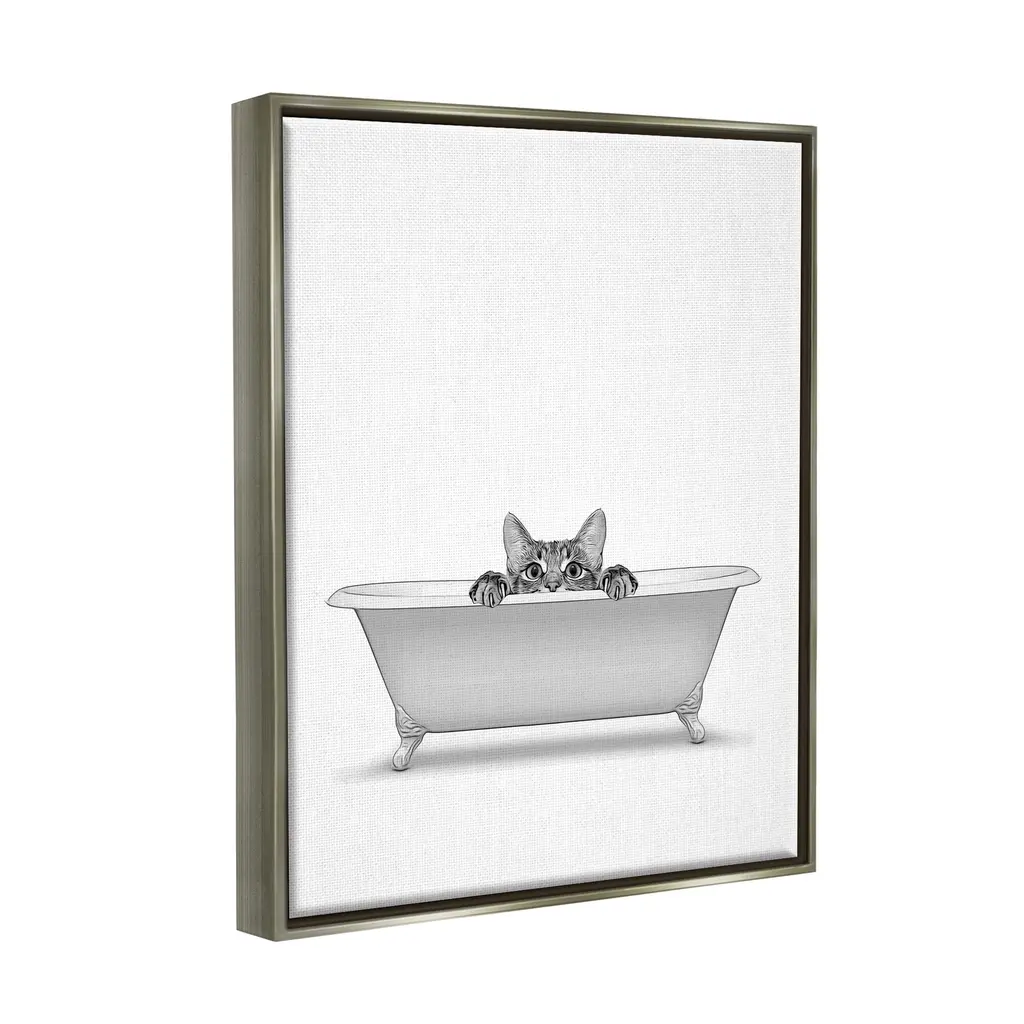 Stupell Cat Peeking Bathroom Tub Framed Floater Canvas Wall Art By Annalisa Latella - 16 X 20 - Grey