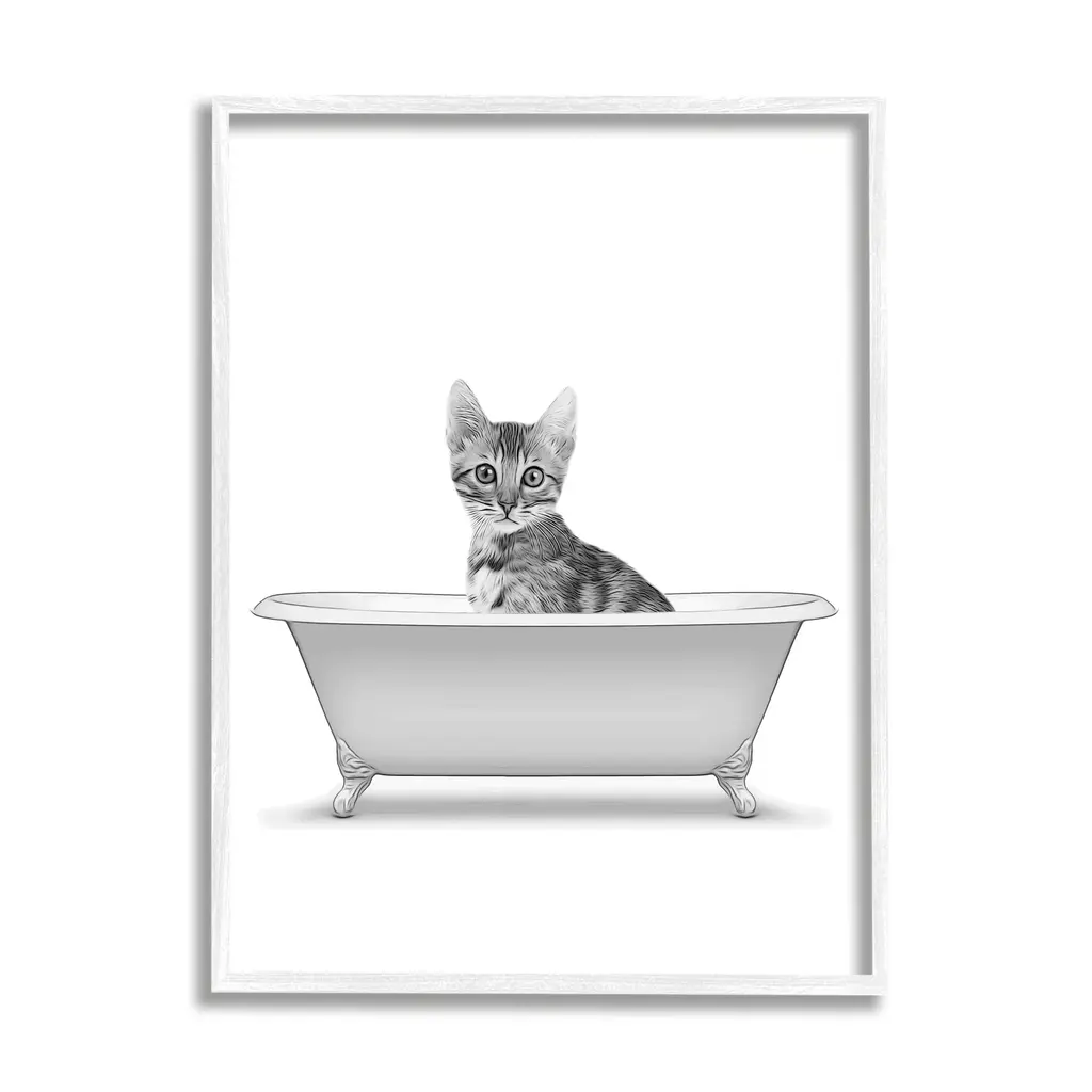 Elevate your home or office to the next level with Stupell Framed Floating Canvas Wall Art. Our premium hand-stretched canvas is mounted securely into a sturdy lightweight frame. The museum-style gap between the wrapped canvas and the box frame gives the illusion of floating artwork. Stupell Wall Art is made in the USA.Features: Dimensions: 17 x 1.7 x 21 Frame, 16 x 1.5 x 20 Canvas ArtFloating Frame Sizes Include Standard: 17 x 1.7 x 21 Oversized: 25 x 1.7 x 31Wall Art is Ready to Hang - No Installation or Hardware Needed. For Easy Set Up Lean or Layer Artwork on Shelf or Against Wall.Our elevated 1.7" Thick Floating Frame is the perfect complement to our canvas style Wall Art. We use only the highest quality inks in house with industry leading printing solutions. Canvas is hand stretched over a durable wood foundation and then mounted securly into a Modern Box Frame. Made in the USA.Artwork Relates To: Animal, Mammal, Wildlife, Bathroom, CatDesign by Annalisa Latella