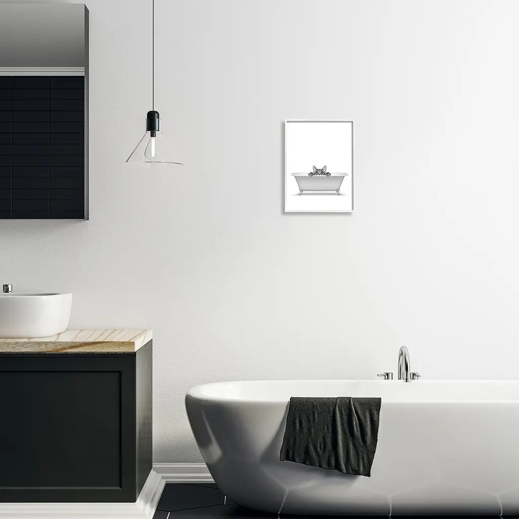 Add dimension to any room with our textured Framed Giclee Artwork. Our framed artwork is securely mounted into a 1.5-inch thick wood grain frame and ready to hang. Frames are available in three alluring styles: black, gray farmhouse and white. In addition, you should check out our oversized options if you want a statement piece. Stupell Wall Art is made in the USA.Features: Dimensions: 11 x 1.5 x 14 FramedFramed Giclee Sizes Include Standard: 11 x 1.5 x 14 Large: 16 x 1.5 x 20 Oversized: 24 x 1.5 x 30Wall Art is Ready to Hang - No Installation or Hardware Needed. For Easy Set Up Lean or Layer Artwork on Shelf or Against Wall.Our giclée prints are carefully mounted on a durable MDF backing, and then perfectly finished in a 1.5 inch thick woodgrain frame. Mounted frame colors include black, gray farmhouse and white. Made In USA.Artwork Relates To: Animal, Mammal, Wildlife, Bathroom, CatDesign by Annalisa Latella