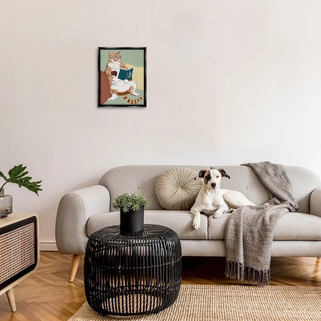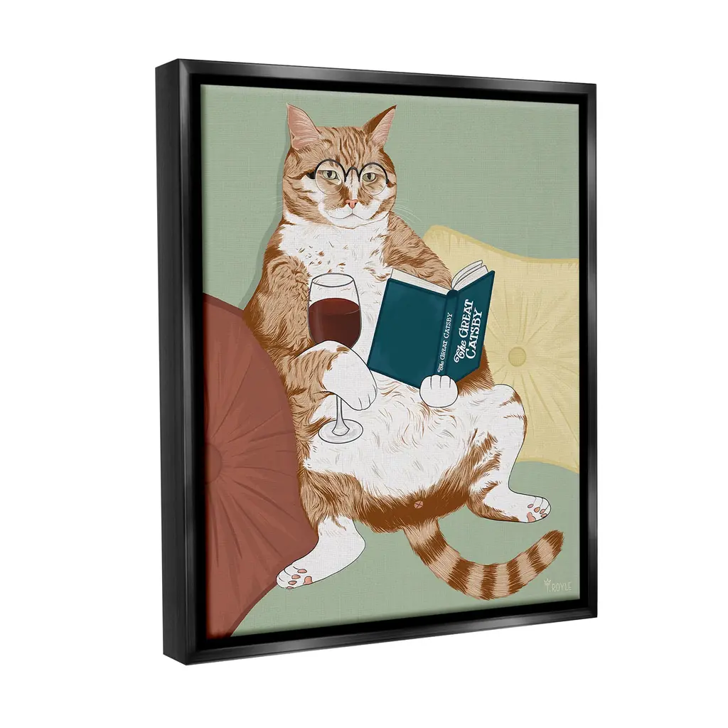 Elevate your home or office to the next level with Stupell Framed Floating Canvas Wall Art. Our premium hand-stretched canvas is mounted securely into a sturdy lightweight frame. The museum-style gap between the wrapped canvas and the box frame gives the illusion of floating artwork. Stupell Wall Art is made in the USA.Features: Dimensions: 17 x 1.7 x 21 Frame, 16 x 1.5 x 20 Canvas ArtFloating Frame Canvas Products are available in sizes 17"x21" and 25"x31". All Floating Frame Canvas Products have a 1.7" Depth.Wall Art is Ready to Hang with Hardware Free Hanging. No Installation required. For Easy Set Up Lean or Layer Artwork on Shelf or Against Wall. Artwork is Permently Fixed into the Frame.Our elevated 1.7" Thick Floating Frame is the perfect complement to our canvas style Wall Art. We use only the highest quality inks in house with industry leading printing solutions. Canvas is hand stretched over a durable wood foundation and then mounted securly into a Modern Box Frame. Made in the USA.Artwork Relates To: Animal, Pet, Cat, Humor, Funny, Reading, Book, Wine, DrinkDesign by Tara Royle