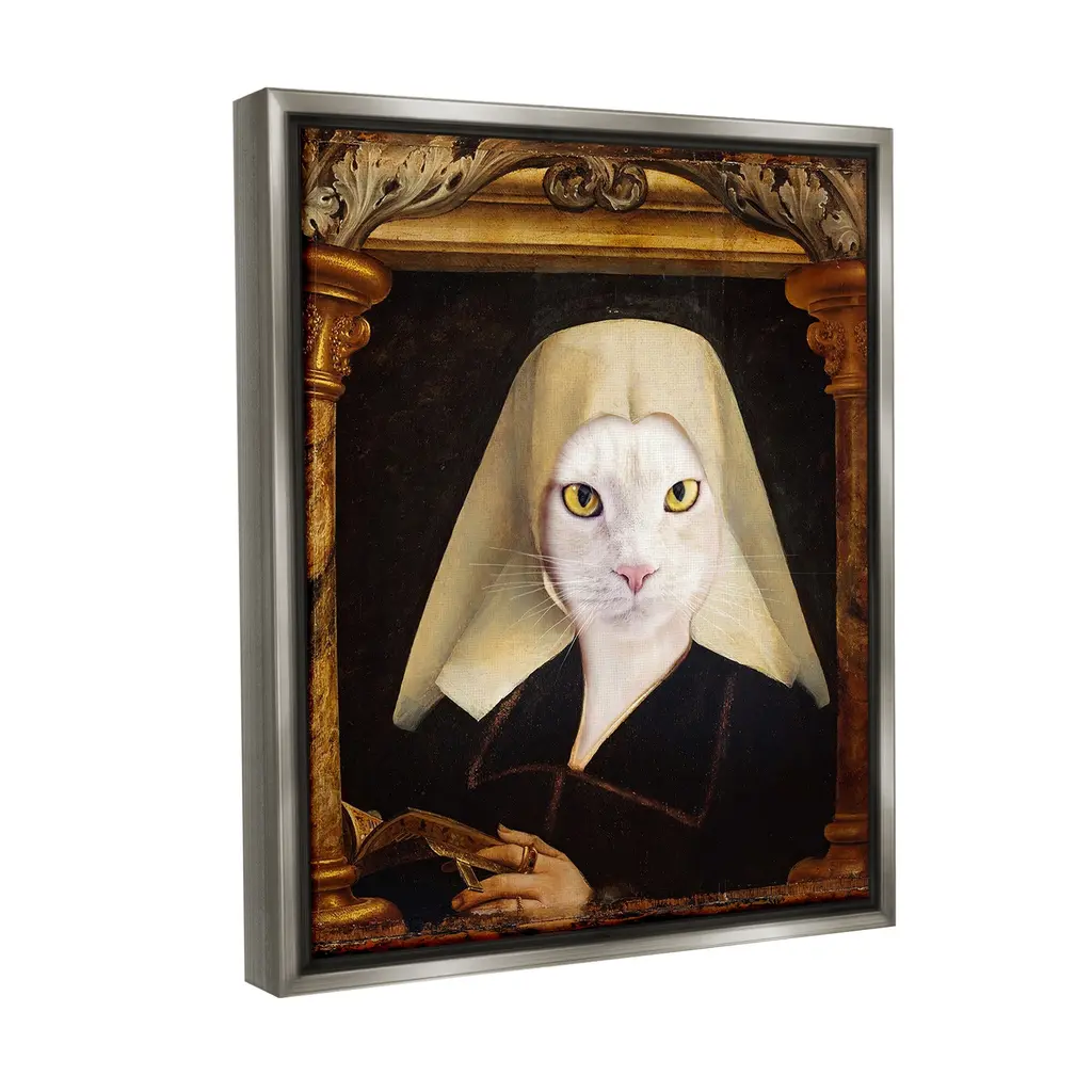 Elevate your home or office to the next level with Stupell Framed Floating Canvas Wall Art. Our premium hand-stretched canvas is mounted securely into a sturdy lightweight frame. The museum-style gap between the wrapped canvas and the box frame gives the illusion of floating artwork. Stupell Wall Art is made in the USA.Features: Dimensions: 17 x 1.7 x 21 Frame, 16 x 1.5 x 20 Canvas ArtFloating Frame Canvas Products are available in sizes 17"x21" and 25"x31". All Floating Frame Canvas Products have a 1.7" Depth.Wall Art is Ready to Hang with Hardware Free Hanging. No Installation required. For Easy Set Up Lean or Layer Artwork on Shelf or Against Wall. Artwork is Permently Fixed into the Frame.Our elevated 1.7" Thick Floating Frame is the perfect complement to our canvas style Wall Art. We use only the highest quality inks in house with industry leading printing solutions. Canvas is hand stretched over a durable wood foundation and then mounted securly into a Modern Box Frame. Made in the USA.Artwork Relates To: Arch, Animal, Cat, Mammal, Pet, Classic, Humor, FunnyDesign by Karen Burke
