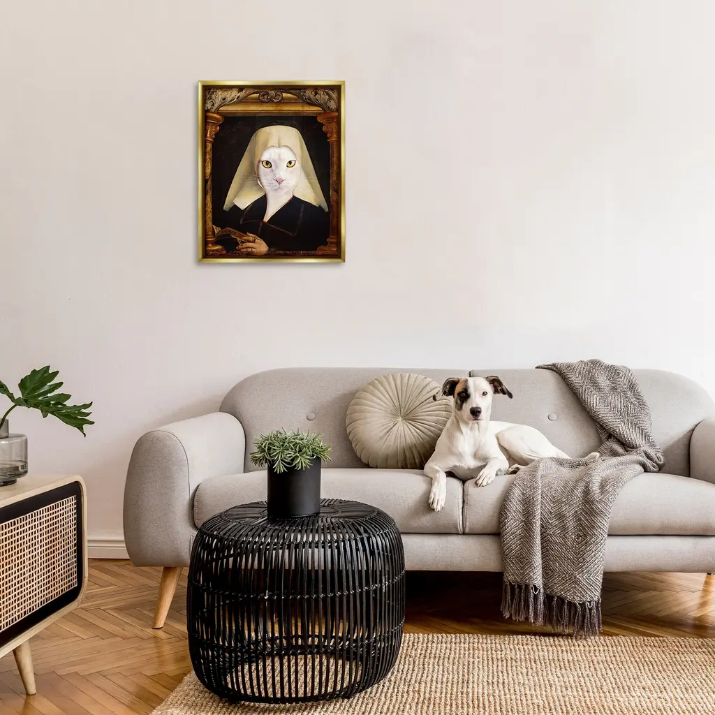 Elevate your home or office to the next level with Stupell Framed Floating Canvas Wall Art. Our premium hand-stretched canvas is mounted securely into a sturdy lightweight frame. The museum-style gap between the wrapped canvas and the box frame gives the illusion of floating artwork. Stupell Wall Art is made in the USA.Features: Dimensions: 17 x 1.7 x 21 Frame, 16 x 1.5 x 20 Canvas ArtFloating Frame Canvas Products are available in sizes 17"x21" and 25"x31". All Floating Frame Canvas Products have a 1.7" Depth.Wall Art is Ready to Hang with Hardware Free Hanging. No Installation required. For Easy Set Up Lean or Layer Artwork on Shelf or Against Wall. Artwork is Permently Fixed into the Frame.Our elevated 1.7" Thick Floating Frame is the perfect complement to our canvas style Wall Art. We use only the highest quality inks in house with industry leading printing solutions. Canvas is hand stretched over a durable wood foundation and then mounted securly into a Modern Box Frame. Made in the USA.Artwork Relates To: Arch, Animal, Cat, Mammal, Pet, Classic, Humor, FunnyDesign by Karen Burke