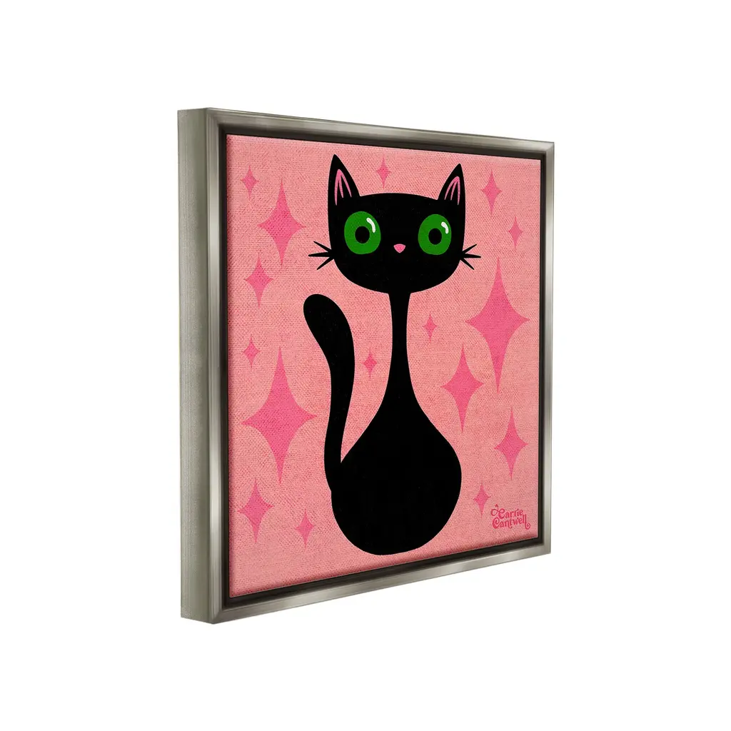 Elevate your home or office to the next level with Stupell Framed Floating Canvas Wall Art. Our premium hand-stretched canvas is mounted securely into a sturdy lightweight frame. The museum-style gap between the wrapped canvas and the box frame gives the illusion of floating artwork. Stupell Wall Art is made in the USA.Features: Dimensions: 18 x 1.7 x 18 Frame, 17 x 1.5 x 17 Canvas ArtFloating Frame Canvas Products are available in sizes 18"x18" and 25"x25". All Floating Frame Canvas Products have a 1.7" Depth.Wall Art is Ready to Hang with Hardware Free Hanging. No Installation required. For Easy Set Up Lean or Layer Artwork on Shelf or Against Wall. Artwork is Permently Fixed into the Frame.Our elevated 1.7" Thick Floating Frame is the perfect complement to our canvas style Wall Art. We use only the highest quality inks in house with industry leading printing solutions. Canvas is hand stretched over a durable wood foundation and then mounted securly into a Modern Box Frame. Made in the USA.Artwork Relates To: Animal, Cat, Mammal, Pet, Black Cat, Pattern, Diamond, Pink, GeometricDesign by Carrie Cantwell