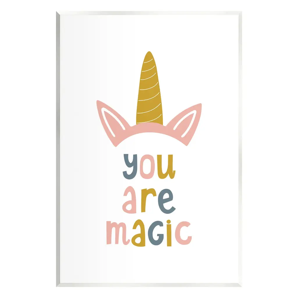 Our wall plaques start as high-quality lithograph prints mounted on durable 0.5-inch thick MDF wood. Each piece is hand finished and comes with a fresh layer of white foil on the sides to give it a crisp, clean look. Plaques arrive ready to hang without installation and come with removable plastic corners to keep them from damage in transit. Stupell Wall Art is made in the USA.Features: Dimensions: 10 x 0.5 x 15 InchesWall Plaque Sizes Include Standard: 10 x 0.5 x 15 Oversized: 13 x 0.5 x 19Wall Art is Ready to Hang with Hardware Free Hanging. No installation required. For Easy Set Up Lean or Layer Artwork on Shelf or Against Wall.All of our wall plaques start off as high quality lithograph prints that are then mounted on durable 0.5 inch thick MDF wood. Each piece is hand finished and comes with a fresh layer of foil on the sides to give it a crisp clean look. Made In USA.Artwork Relates To: Animal, Rainbow, Moon, Stars, Unicorn, Fantasy, Catch the RainbowDesign by LSR Design Studio