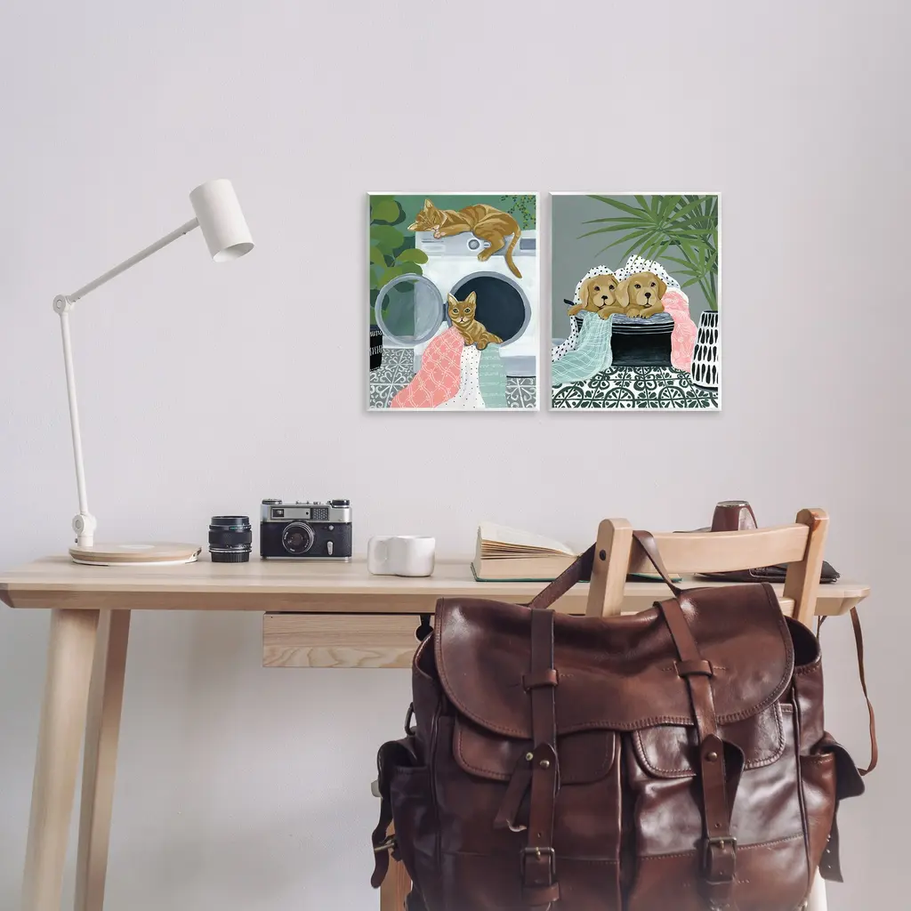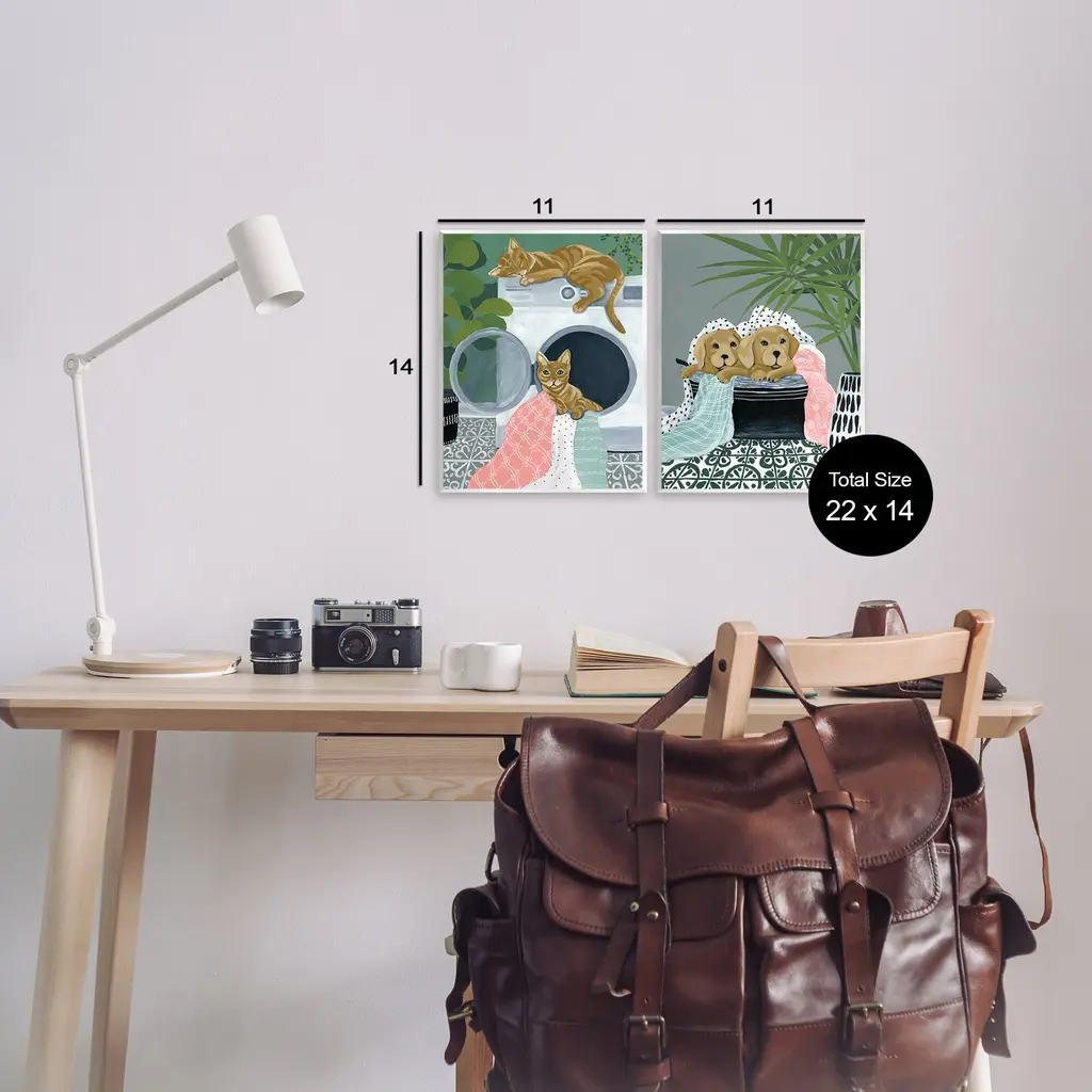 Fill any space with Stupell Wall Art Sets. Our wall plaques start as high-quality lithograph prints mounted on durable 0.5-inch thick MDF wood. Each piece is hand finished and comes with a fresh layer of white foil on the sides to give it a crisp, clean look. Plaques arrive ready to hang without installation and come with removable plastic corners to keep them from damage in transit. Stupell Wall Art is made in the USA.Features: Dimensions: 2 Piece Set, Each Panel is 11 x 0.5 x 14 InchesWall Art is Ready to Hang with Hardware Free Hanging. No installation required. For Easy Set Up Lean or Layer Artwork on Shelf or Against Wall.All of our wall plaques start off as high quality lithograph prints that are then mounted on durable 0.5 inch thick MDF wood. Each piece is hand finished and comes with a fresh layer of foil on the sides to give it a crisp clean look. Made In USA.Artwork Relates To: Animal, Pet, Dog, Cat, Laundry, PlantDesign by Yvette St. Amant