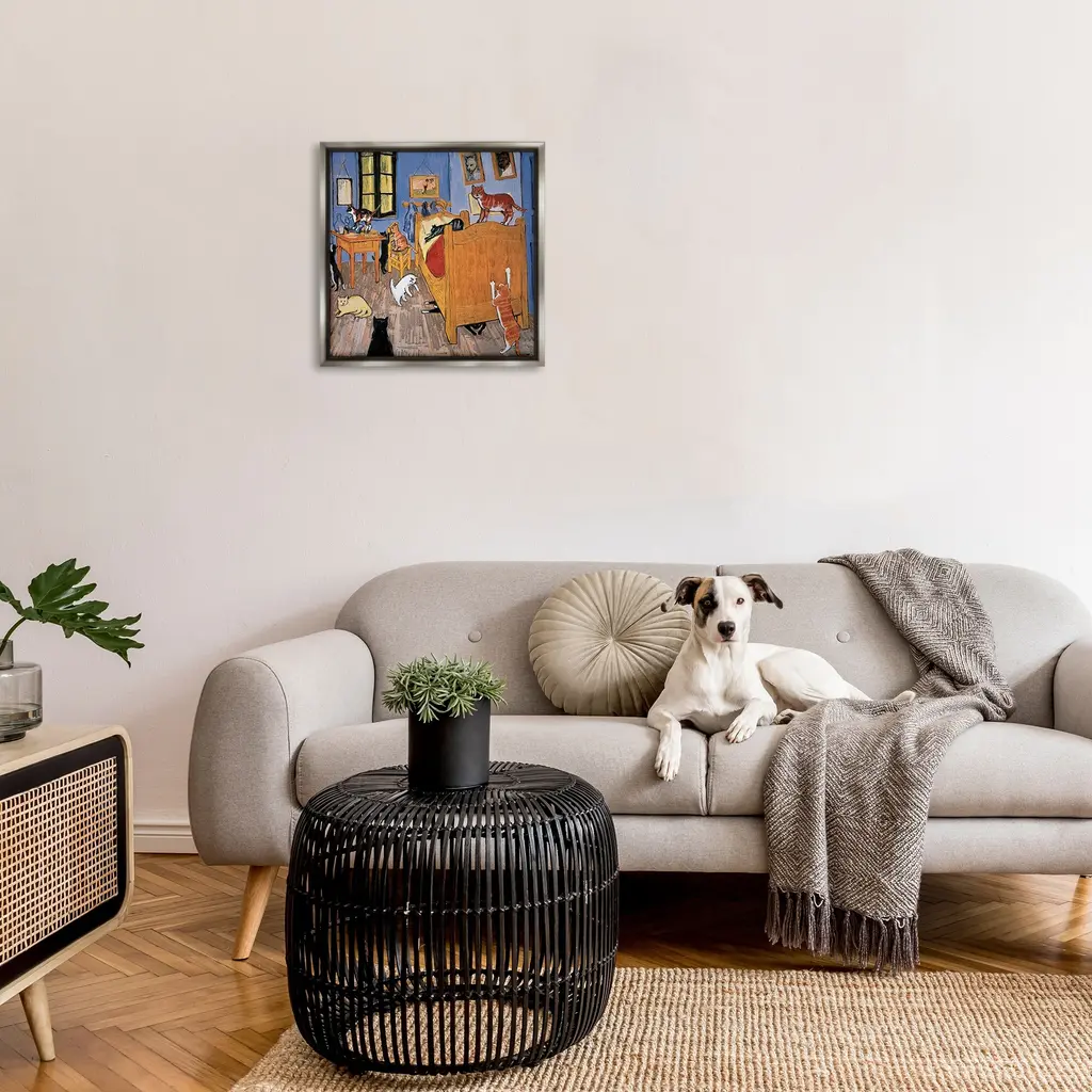 Elevate your home or office to the next level with Stupell Framed Floating Canvas Wall Art. Our premium hand-stretched canvas is mounted securely into a sturdy lightweight frame. The museum-style gap between the wrapped canvas and the box frame gives the illusion of floating artwork. Stupell Wall Art is made in the USA.Features: Dimensions: 18 x 1.7 x 18 Frame, 17 x 1.5 x 17 Canvas ArtFloating Frame Canvas Products are available in sizes 18"x18" and 25"x25". All Floating Frame Canvas Products have a 1.7" Depth.Wall Art is Ready to Hang with Hardware Free Hanging. No Installation required. For Easy Set Up Lean or Layer Artwork on Shelf or Against Wall. Artwork is Permently Fixed into the Frame.Our elevated 1.7" Thick Floating Frame is the perfect complement to our canvas style Wall Art. We use only the highest quality inks in house with industry leading printing solutions. Canvas is hand stretched over a durable wood foundation and then mounted securly into a Modern Box Frame. Made in the USA.Artwork Relates To: Animal, Pet, Cat, Humor, Classic, PaintingDesign by Chameleon Design, Inc.