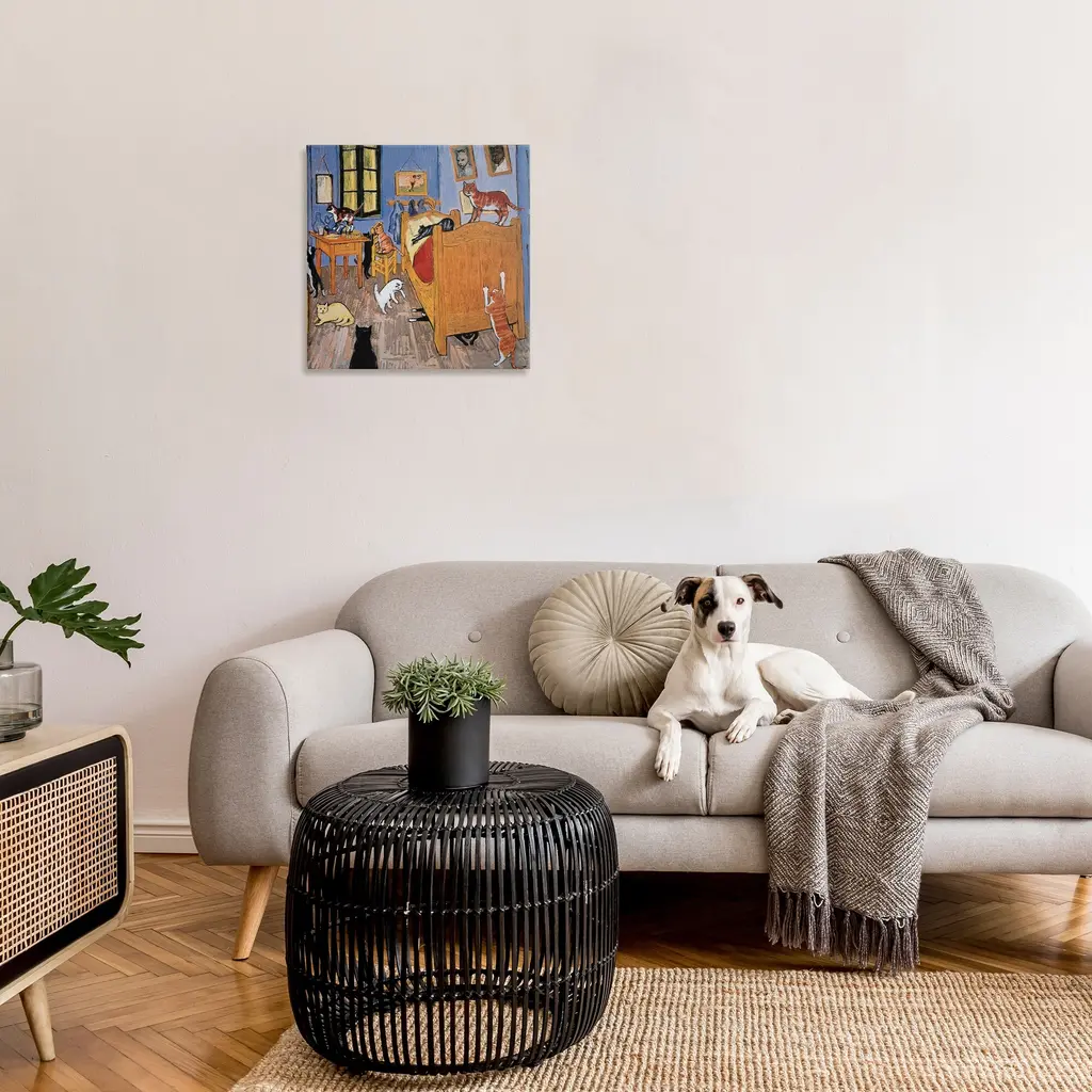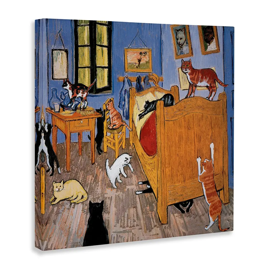 Stupell Cats In The Bedroom Classic Painting Parody Canvas Wall Art - Orange - 24 X 24