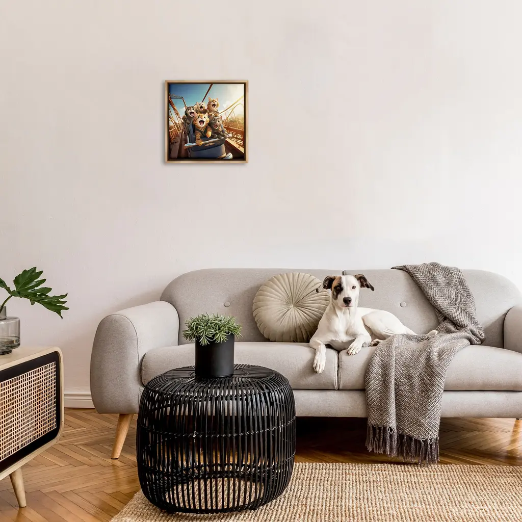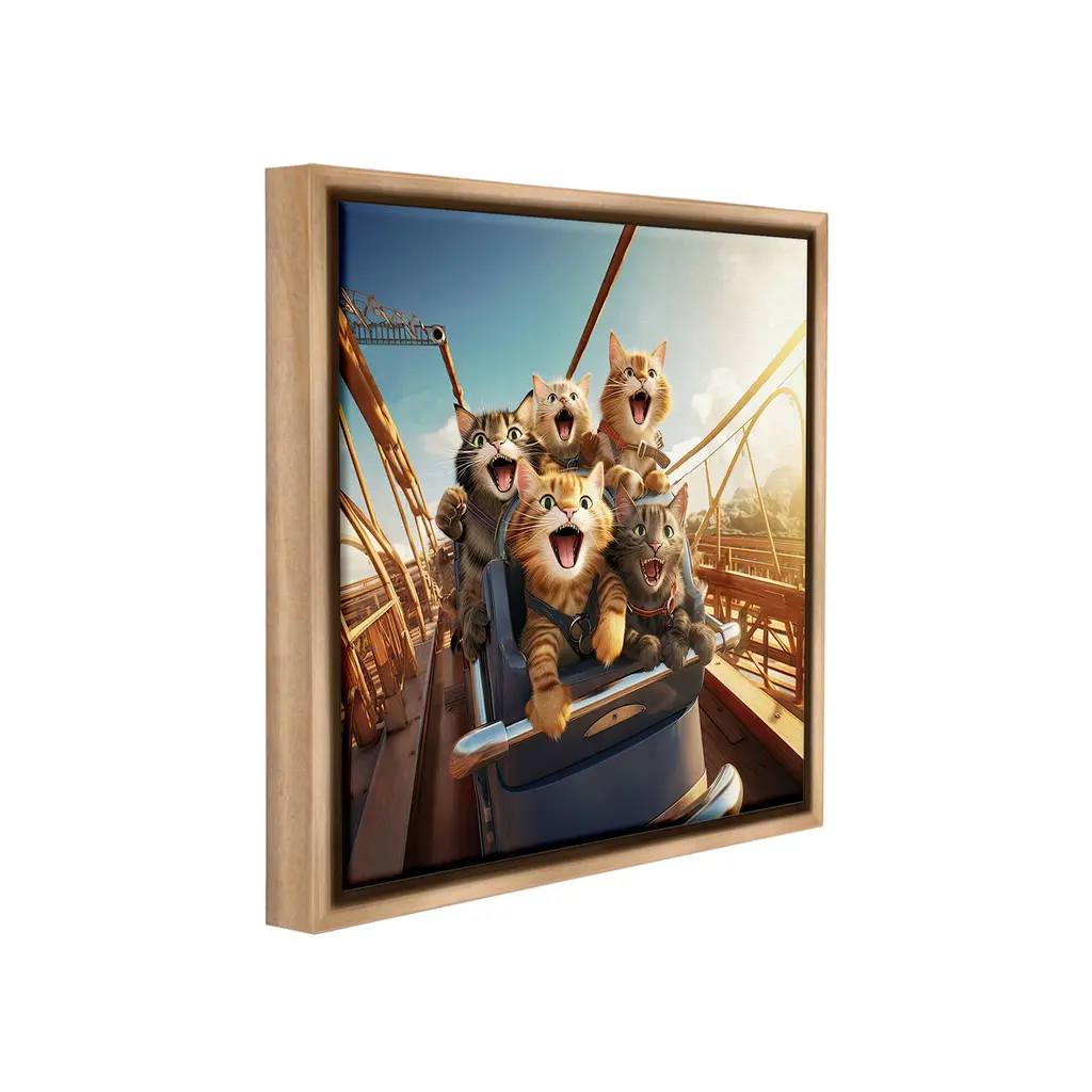 Elevate your home or office to the next level with Stupell Framed Floating Canvas Wall Art. Our premium hand-stretched canvas is mounted securely into a sturdy lightweight frame. The museum-style gap between the wrapped canvas and the box frame gives the illusion of floating artwork. Stupell Wall Art is made in the USA.Features: Dimensions: 18 x 1.7 x 18 Frame, 17 x 1.5 x 17 Canvas ArtFloating Frame Canvas Products are available in sizes 18"x18" and 25"x25". All Floating Frame Canvas Products have a 1.7" Depth.Wall Art is Ready to Hang with Hardware Free Hanging. No Installation required. For Easy Set Up Lean or Layer Artwork on Shelf or Against Wall. Artwork is Permently Fixed into the Frame.Our elevated 1.7" Thick Floating Frame is the perfect complement to our canvas style Wall Art. We use only the highest quality inks in house with industry leading printing solutions. Canvas is hand stretched over a durable wood foundation and then mounted securly into a Modern Box Frame. Made in the USA.Artwork Relates To: Animal, Cat, Mammal, Pet, Humor, Funny, Rollercoaster, Amusement ParkDesign by Jim Baldwin