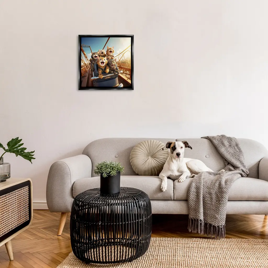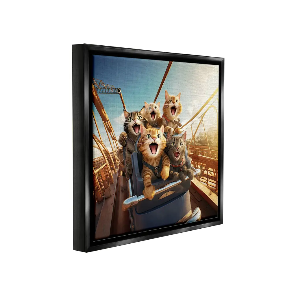 Elevate your home or office to the next level with Stupell Framed Floating Canvas Wall Art. Our premium hand-stretched canvas is mounted securely into a sturdy lightweight frame. The museum-style gap between the wrapped canvas and the box frame gives the illusion of floating artwork. Stupell Wall Art is made in the USA.Features: Dimensions: 18 x 1.7 x 18 Frame, 17 x 1.5 x 17 Canvas ArtFloating Frame Canvas Products are available in sizes 18"x18" and 25"x25". All Floating Frame Canvas Products have a 1.7" Depth.Wall Art is Ready to Hang with Hardware Free Hanging. No Installation required. For Easy Set Up Lean or Layer Artwork on Shelf or Against Wall. Artwork is Permently Fixed into the Frame.Our elevated 1.7" Thick Floating Frame is the perfect complement to our canvas style Wall Art. We use only the highest quality inks in house with industry leading printing solutions. Canvas is hand stretched over a durable wood foundation and then mounted securly into a Modern Box Frame. Made in the USA.Artwork Relates To: Animal, Cat, Mammal, Pet, Humor, Funny, Rollercoaster, Amusement ParkDesign by Jim Baldwin