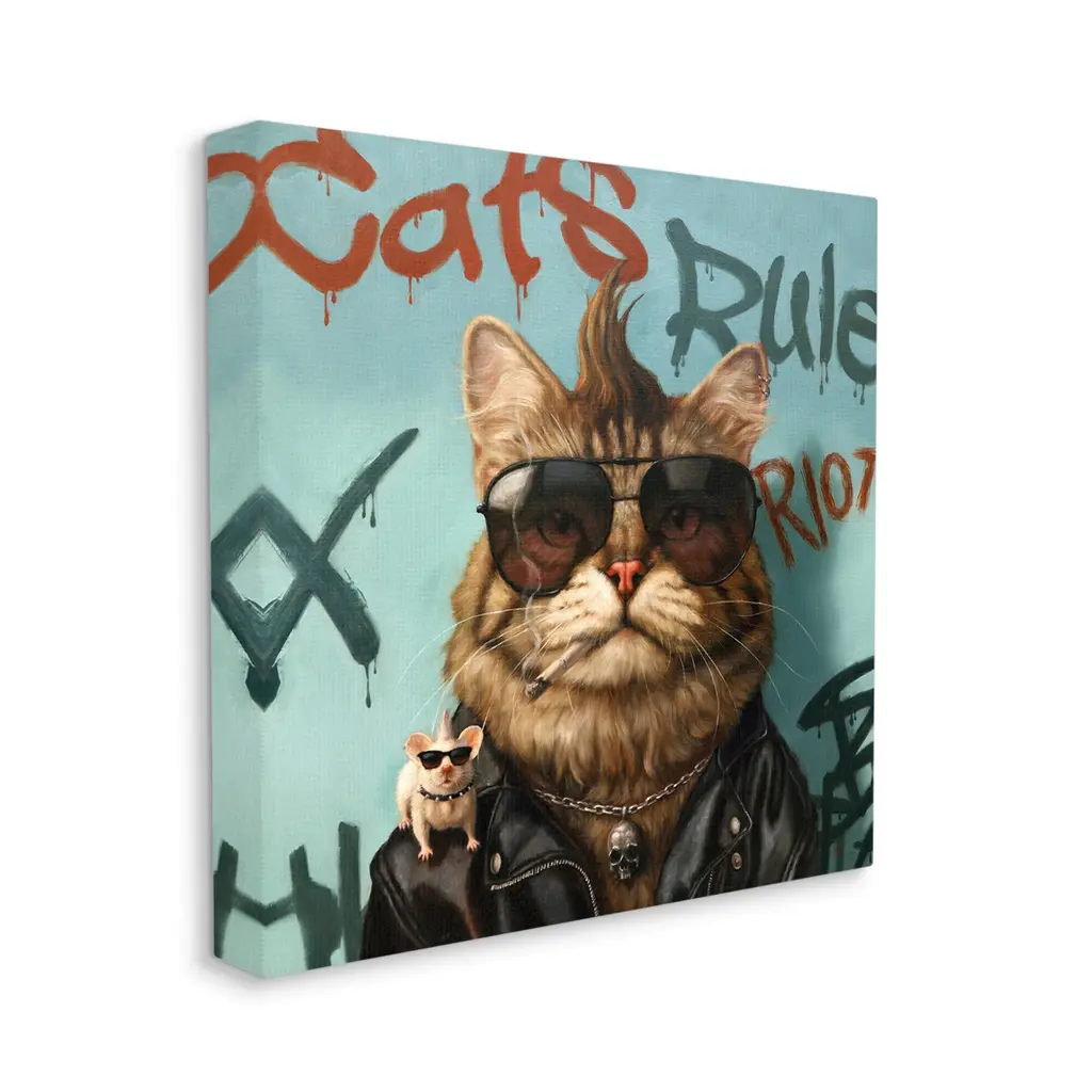 Stupell Cats Rule Graffiti Urban Animals Canvas Wall Art By Lucia Heffernan - 17 X 17