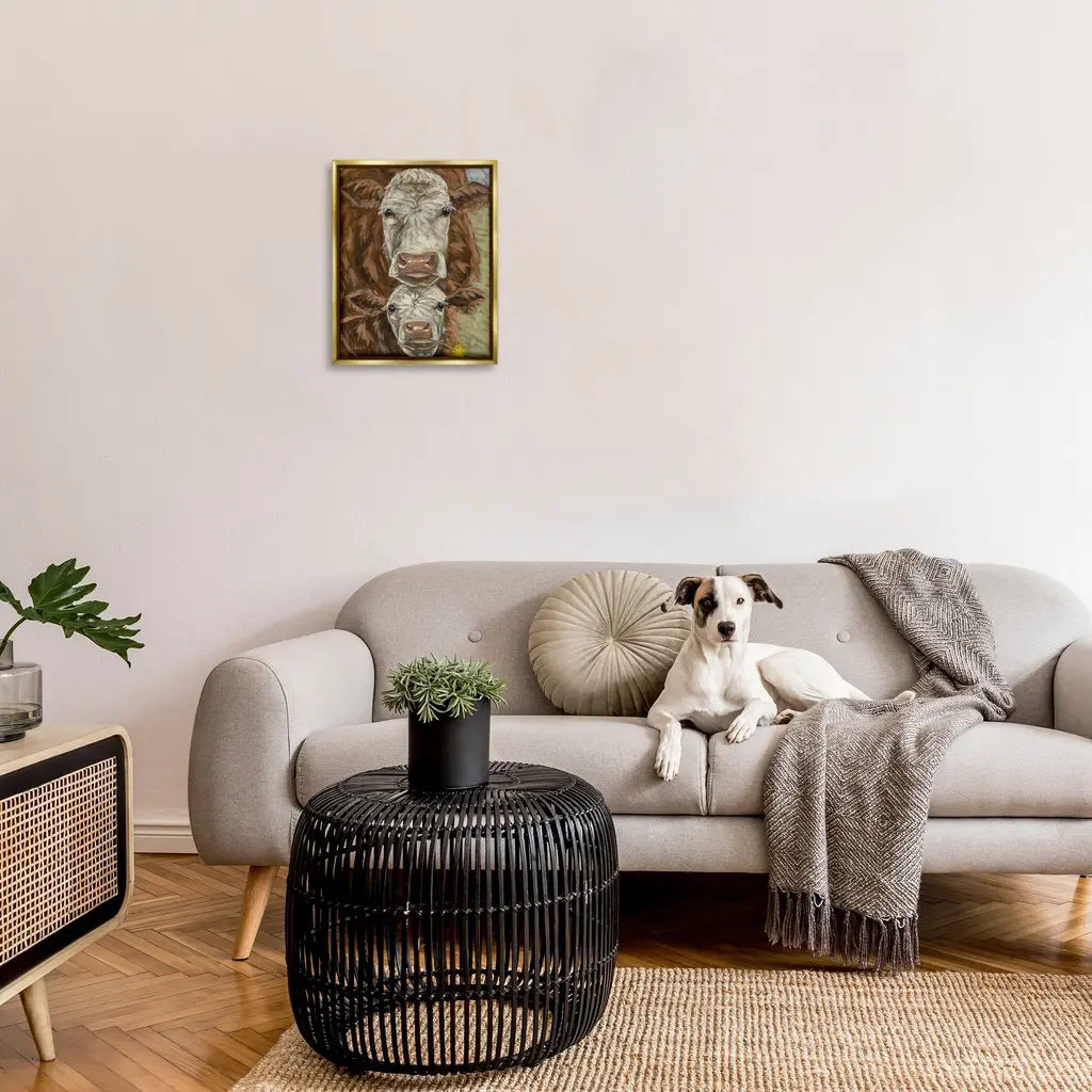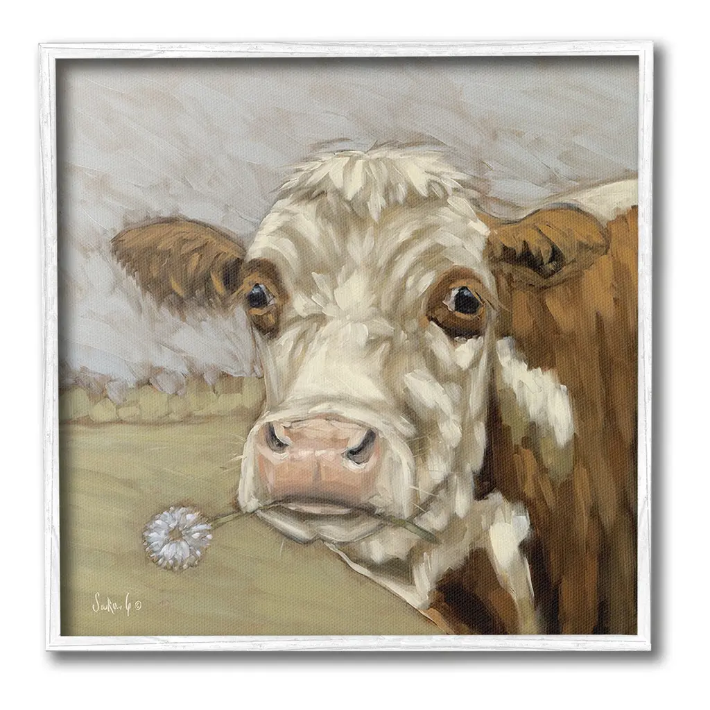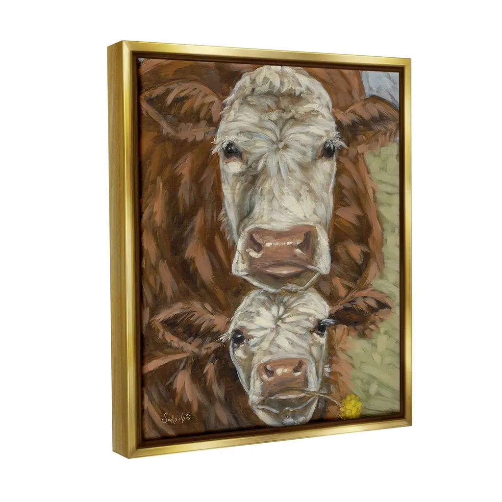 Elevate your home or office to the next level with Stupell Framed Floating Canvas Wall Art. Our premium hand-stretched canvas is mounted securely into a sturdy lightweight frame. The museum-style gap between the wrapped canvas and the box frame gives the illusion of floating artwork. Stupell Wall Art is made in the USA.Features: Dimensions: 17 x 1.7 x 21 Frame, 16 x 1.5 x 20 Canvas ArtFloating Frame Canvas Products are available in sizes 17"x21" and 25"x31". All Floating Frame Canvas Products have a 1.7" Depth.Wall Art is Ready to Hang with Hardware Free Hanging. No Installation required. For Easy Set Up Lean or Layer Artwork on Shelf or Against Wall. Artwork is Permently Fixed into the Frame.Our elevated 1.7" Thick Floating Frame is the perfect complement to our canvas style Wall Art. We use only the highest quality inks in house with industry leading printing solutions. Canvas is hand stretched over a durable wood foundation and then mounted securly into a Modern Box Frame. Made in the USA.Artwork Relates To: Painting, Animal, Mammal, Abstract, Modern, Farm, Country, Cow, Cattle, FlowerDesign by Sara G. Designs