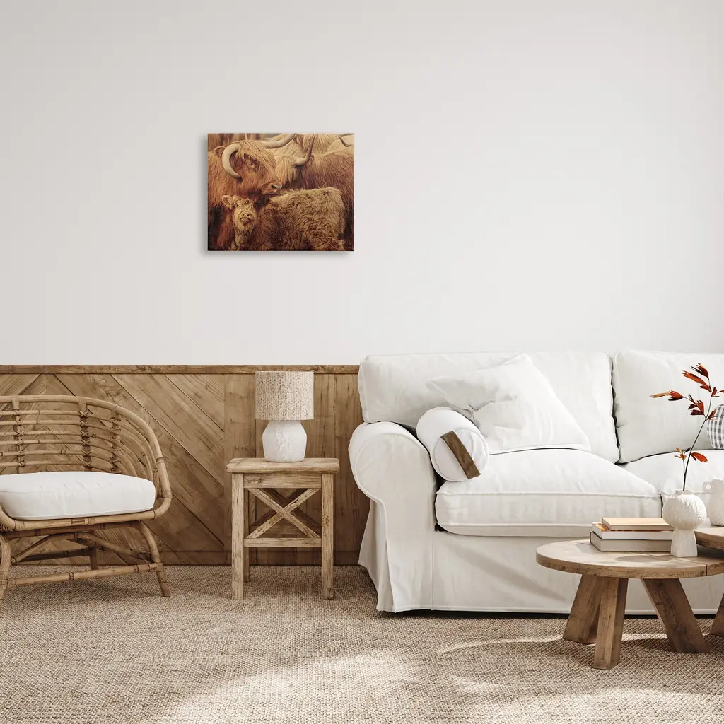 We create our stretched canvas to the highest standards. Using only the highest quality inks and canvas on Mimaki printers, we hand-cut and stretch each piece over a 1.5-inch thick wooden frame for hanging. As a result, the art comes ready to hang on the sturdy ledge with no installation required. Stupell Wall Art is made in the USA.Features: Dimensions: 20 x 1.5 x 16 InchesStretched Canvas Sizes Include Standard: 20 x 1.5 x 16 Large: 30 x 1.5 x 20 X-Large: 40 x 1.5 x 30 Oversized: 48 x 1.5 x 36Wall Art is Ready to Hang with Hardware Free Hanging. No installation required. For Easy Set Up Lean or Layer Artwork on Shelf or Against Wall.Our stretched canvas is created with the highest standards. We use only the highest quality inks and canvas on our in house Mimaki printers, and then hand cut and stretch each piece over a 1.5 inch thick wooden frame for hanging. Made In USA.Artwork Relates To: Animal, Cattle, Cow, Mammal, Country, Wildlife, Farm, Brown, PhotographyDesign by Nathan Larson