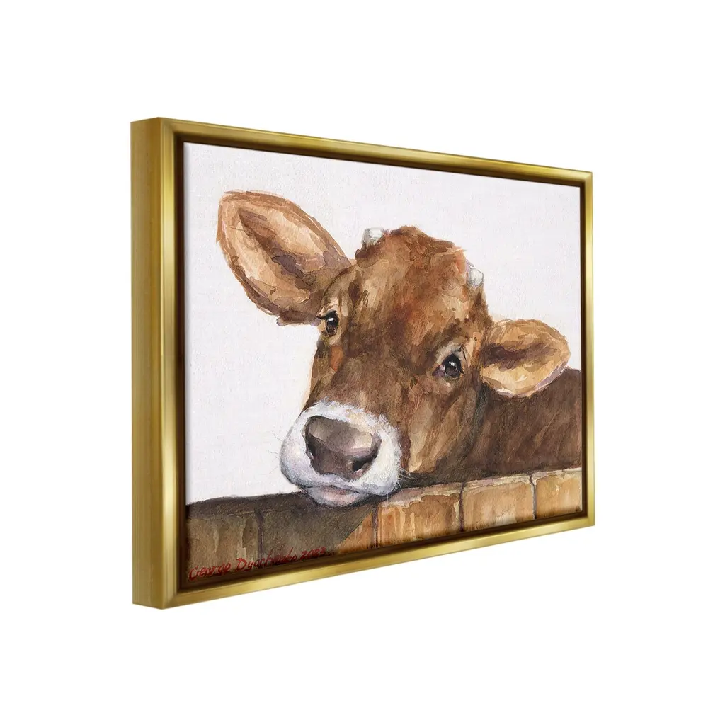 Elevate your home or office to the next level with Stupell Framed Floating Canvas Wall Art. Our premium hand-stretched canvas is mounted securely into a sturdy lightweight frame. The museum-style gap between the wrapped canvas and the box frame gives the illusion of floating artwork. Stupell Wall Art is made in the USA.Features: Dimensions: 21 x 1.7 x 17 Frame, 20 x 1.5 x 16 Canvas ArtFloating Frame Canvas Products are available in sizes 21"x17" and 31"x25". All Floating Frame Canvas Products have a 1.7" Depth.Wall Art is Ready to Hang with Hardware Free Hanging. No Installation required. For Easy Set Up Lean or Layer Artwork on Shelf or Against Wall. Artwork is Permently Fixed into the Frame.Our elevated 1.7" Thick Floating Frame is the perfect complement to our canvas style Wall Art. We use only the highest quality inks in house with industry leading printing solutions. Canvas is hand stretched over a durable wood foundation and then mounted securly into a Modern Box Frame. Made in the USA.Artwork Relates To: Animal, Cattle, Cow, Mammal, Calf, Country, FarmDesign by GeorgeDyachenkoArt