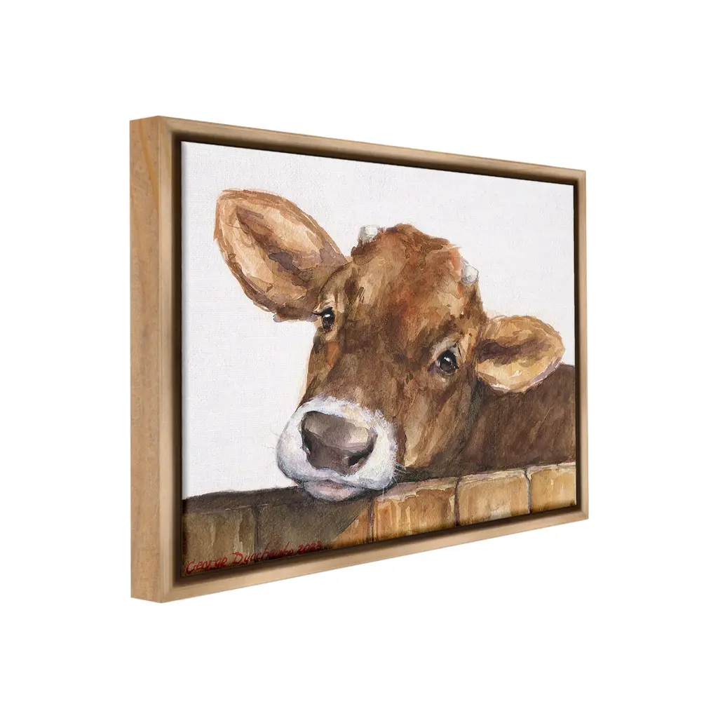 Elevate your home or office to the next level with Stupell Framed Floating Canvas Wall Art. Our premium hand-stretched canvas is mounted securely into a sturdy lightweight frame. The museum-style gap between the wrapped canvas and the box frame gives the illusion of floating artwork. Stupell Wall Art is made in the USA.Features: Dimensions: 21 x 1.7 x 17 Frame, 20 x 1.5 x 16 Canvas ArtFloating Frame Canvas Products are available in sizes 21"x17" and 31"x25". All Floating Frame Canvas Products have a 1.7" Depth.Wall Art is Ready to Hang with Hardware Free Hanging. No Installation required. For Easy Set Up Lean or Layer Artwork on Shelf or Against Wall. Artwork is Permently Fixed into the Frame.Our elevated 1.7" Thick Floating Frame is the perfect complement to our canvas style Wall Art. We use only the highest quality inks in house with industry leading printing solutions. Canvas is hand stretched over a durable wood foundation and then mounted securly into a Modern Box Frame. Made in the USA.Artwork Relates To: Animal, Cattle, Cow, Mammal, Calf, Country, FarmDesign by GeorgeDyachenkoArt