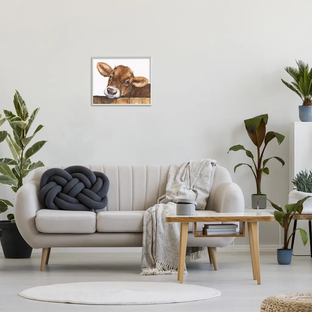Add dimension to any room with our textured Framed Giclee Artwork. Our framed artwork is securely mounted into a 1.5-inch thick wood grain frame and ready to hang. Frames are available in three alluring styles: black, gray farmhouse and white. In addition, you should check out our oversized options if you want a statement piece. Stupell Wall Art is made in the USA.Features: Dimensions: 14 x 1.5 x 11 FramedFramed Giclee Products are available in the sizes 14"x11", 20"x16" or 30"x24". All Framed Giclee Products have a 1.5" Depth. Wall Art is Ready to Hang with Hardware Free Hanging. No installation required. For Easy Set Up Lean or Layer Artwork on Shelf or Against Wall.Our giclée prints are carefully mounted on a durable MDF backing, and then perfectly finished in a 1.5 inch thick woodgrain frame. Mounted frame colors include black, gray farmhouse and white. Made In USA.Artwork Relates To: Animal, Cattle, Cow, Mammal, Calf, Country, FarmDesign by GeorgeDyachenkoArt