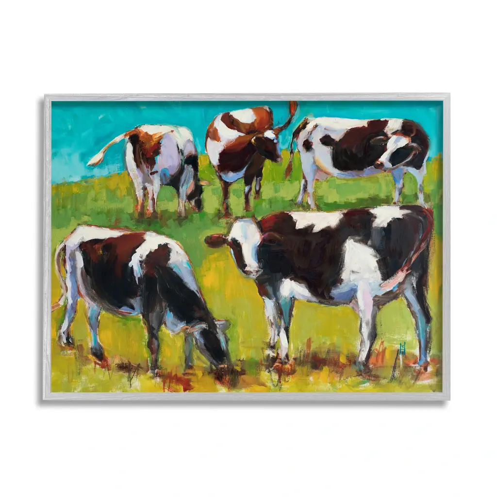 Add dimension to any room with our textured Framed Giclee Artwork. Our framed artwork is securely mounted into a 1.5-inch thick wood grain frame and ready to hang. Frames are available in three alluring styles: black, gray farmhouse and white. In addition, you should check out our oversized options if you want a statement piece. Stupell Wall Art is made in the USA.Features: Dimensions: 14 x 1.5 x 11 FramedFramed Giclee Sizes Include Standard: 14 x 1.5 x 11 Large: 20 x 1.5 x 16 Oversized: 30 x 1.5 x 24Wall Art is Ready to Hang with Hardware Free Hanging. No installation required. For Easy Set Up Lean or Layer Artwork on Shelf or Against Wall.Our giclée prints are carefully mounted on a durable MDF backing, and then perfectly finished in a 1.5 inch thick woodgrain frame. Mounted frame colors include black, gray farmhouse and white. Made In USA.Artwork Relates To: Animal, Cattle, Mammal, Cow, Person, Dairy Cow, CalfDesign by Sally Hootnick