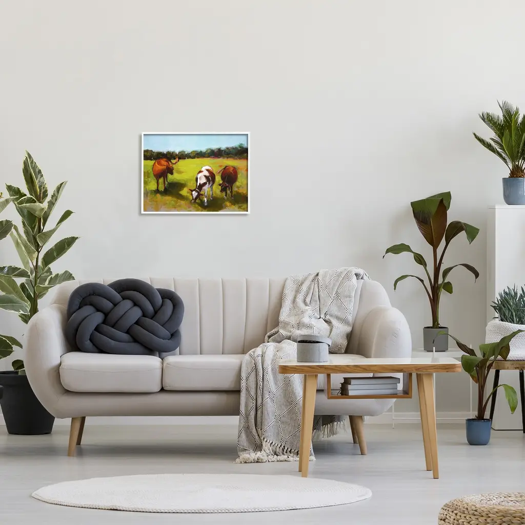 Add dimension to any room with our textured Framed Giclee Artwork. Our framed artwork is securely mounted into a 1.5-inch thick wood grain frame and ready to hang. Frames are available in three alluring styles: black, gray farmhouse and white. In addition, you should check out our oversized options if you want a statement piece. Stupell Wall Art is made in the USA.Features: Dimensions: 14 x 1.5 x 11 FramedFramed Giclee Sizes Include Standard: 14 x 1.5 x 11 Large: 20 x 1.5 x 16 Oversized: 30 x 1.5 x 24Wall Art is Ready to Hang with Hardware Free Hanging. No installation required. For Easy Set Up Lean or Layer Artwork on Shelf or Against Wall.Our giclée prints are carefully mounted on a durable MDF backing, and then perfectly finished in a 1.5 inch thick woodgrain frame. Mounted frame colors include black, gray farmhouse and white. Made In USA.Artwork Relates To: Animal, Cattle, Mammal, Cow, Person, Dairy Cow, CalfDesign by Sally Hootnick