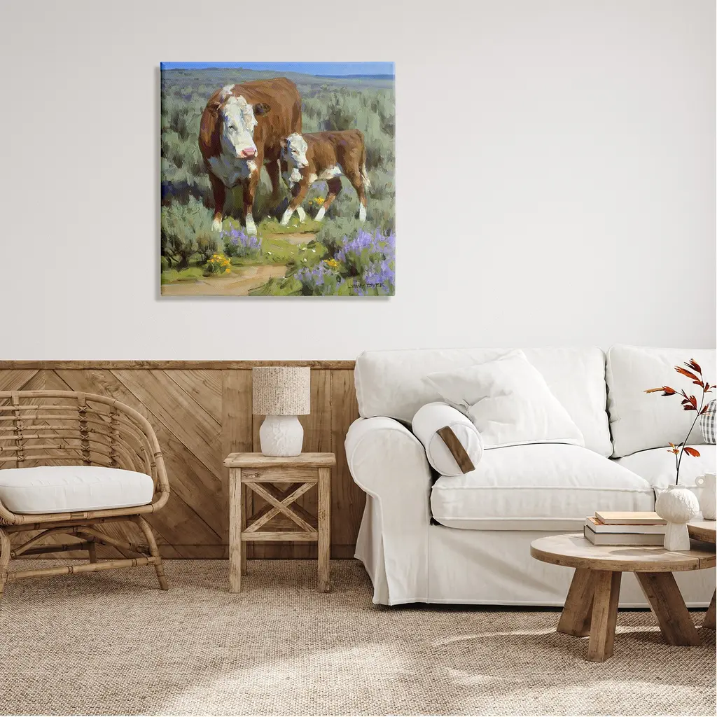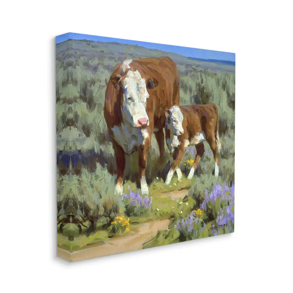 We create our stretched canvas to the highest standards. Using only the highest quality inks and canvas on Mimaki printers, we hand-cut and stretch each piece over a 1.5-inch thick wooden frame for hanging. As a result, the art comes ready to hang on the sturdy ledge with no installation required. Stupell Wall Art is made in the USA.Features: Dimensions: 17 x 1.5 x 17 InchesStretched Canvas Sizes Include Standard: 17 x 1.5 x 17 Large: 24 x 1.5 x 24 X-Large: 30 x 1.5 x 30 Oversized: 36 x 1.5 x 36Wall Art is Ready to Hang - No Installation or Hardware Needed. For Easy Set Up Lean or Layer Artwork on Shelf or Against Wall.Our stretched canvas is created with the highest standards. We use only the highest quality inks and canvas on our in house Mimaki printers, and then hand cut and stretch each piece over a 1.5 inch thick wooden frame for hanging. Made In USA.Artwork Relates To: Animal, Cattle, Mammal, Cow, Calf, Field, Grassland, NatureDesign by Jimmy Dyer