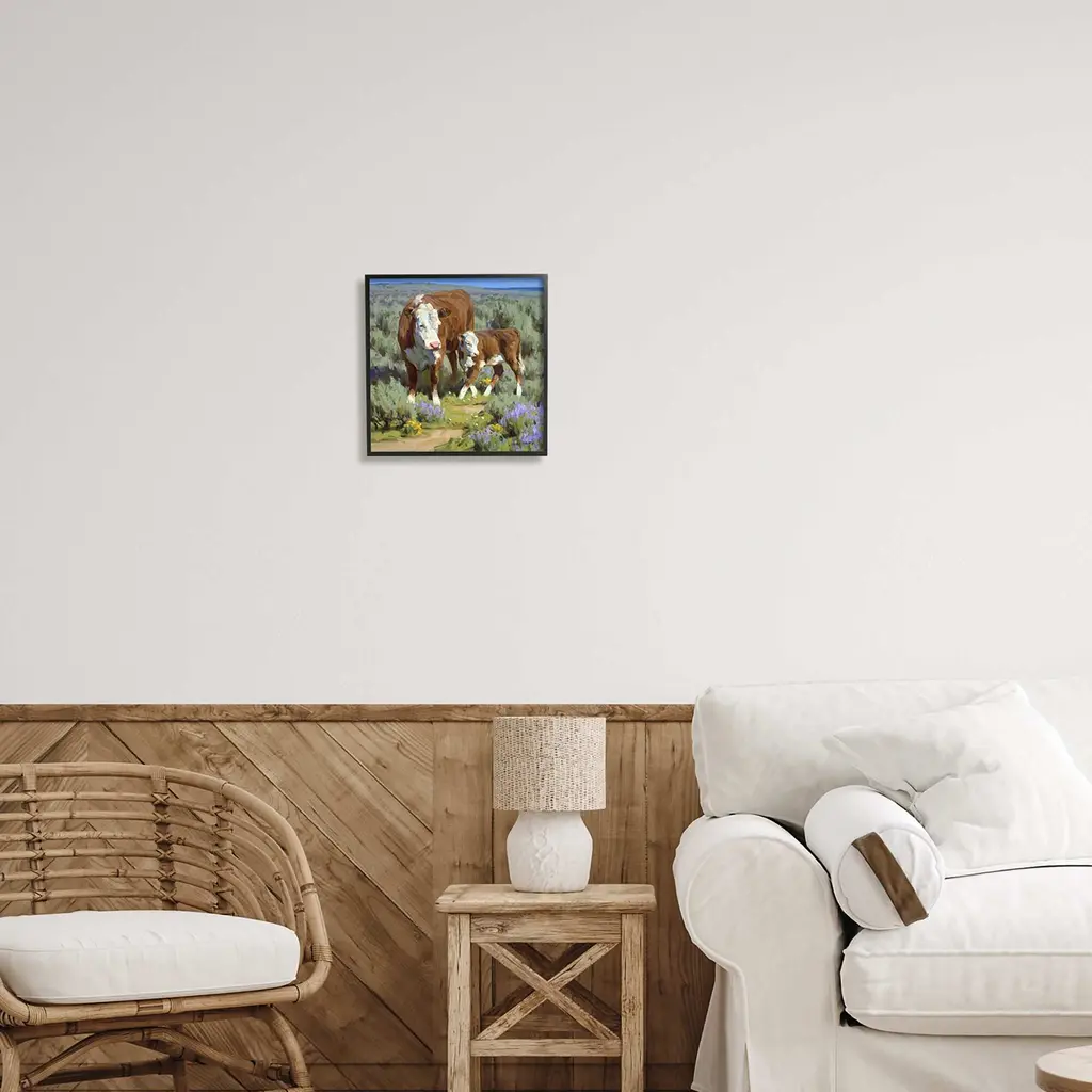 Add dimension to any room with our textured Framed Giclee Artwork. Our framed artwork is securely mounted into a 1.5-inch thick wood grain frame and ready to hang. Frames are available in three alluring styles: black, gray farmhouse and white. In addition, you should check out our oversized options if you want a statement piece. Stupell Wall Art is made in the USA.Features: Dimensions: 12 x 1.5 x 12 FramedFramed Giclee Sizes Include Standard: 12 x 1.5 x 12 Large: 17 x 1.5 x 17 Oversized: 24 x 1.5 x 24Wall Art is Ready to Hang - No Installation or Hardware Needed. For Easy Set Up Lean or Layer Artwork on Shelf or Against Wall.Our giclée prints are carefully mounted on a durable MDF backing, and then perfectly finished in a 1.5 inch thick woodgrain frame. Mounted frame colors include black, gray farmhouse and white. Made In USA.Artwork Relates To: Animal, Cattle, Mammal, Cow, Calf, Field, Grassland, NatureDesign by Jimmy Dyer