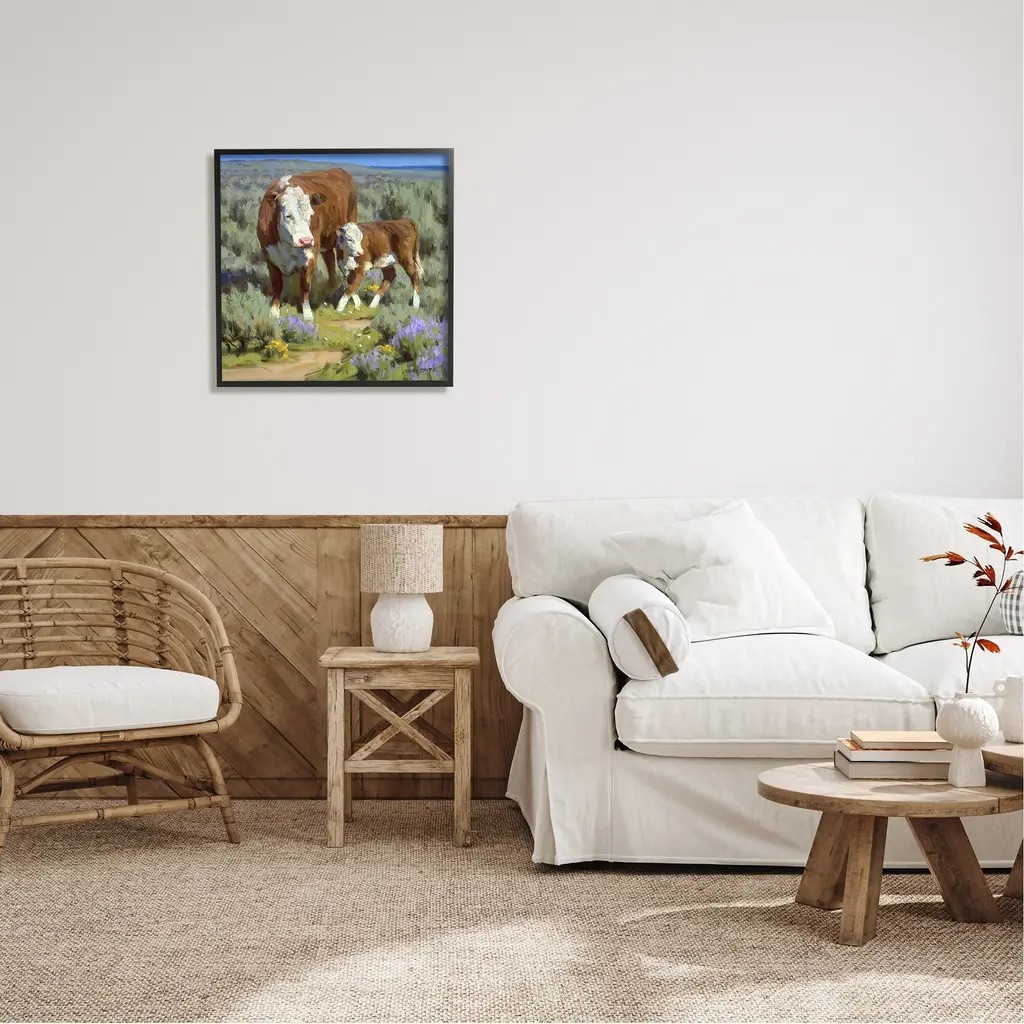 Add dimension to any room with our textured Framed Giclee Artwork. Our framed artwork is securely mounted into a 1.5-inch thick wood grain frame and ready to hang. Frames are available in three alluring styles: black, gray farmhouse and white. In addition, you should check out our oversized options if you want a statement piece. Stupell Wall Art is made in the USA.Features: Dimensions: 12 x 1.5 x 12 FramedFramed Giclee Sizes Include Standard: 12 x 1.5 x 12 Large: 17 x 1.5 x 17 Oversized: 24 x 1.5 x 24Wall Art is Ready to Hang - No Installation or Hardware Needed. For Easy Set Up Lean or Layer Artwork on Shelf or Against Wall.Our giclée prints are carefully mounted on a durable MDF backing, and then perfectly finished in a 1.5 inch thick woodgrain frame. Mounted frame colors include black, gray farmhouse and white. Made In USA.Artwork Relates To: Animal, Cattle, Mammal, Cow, Calf, Field, Grassland, NatureDesign by Jimmy Dyer