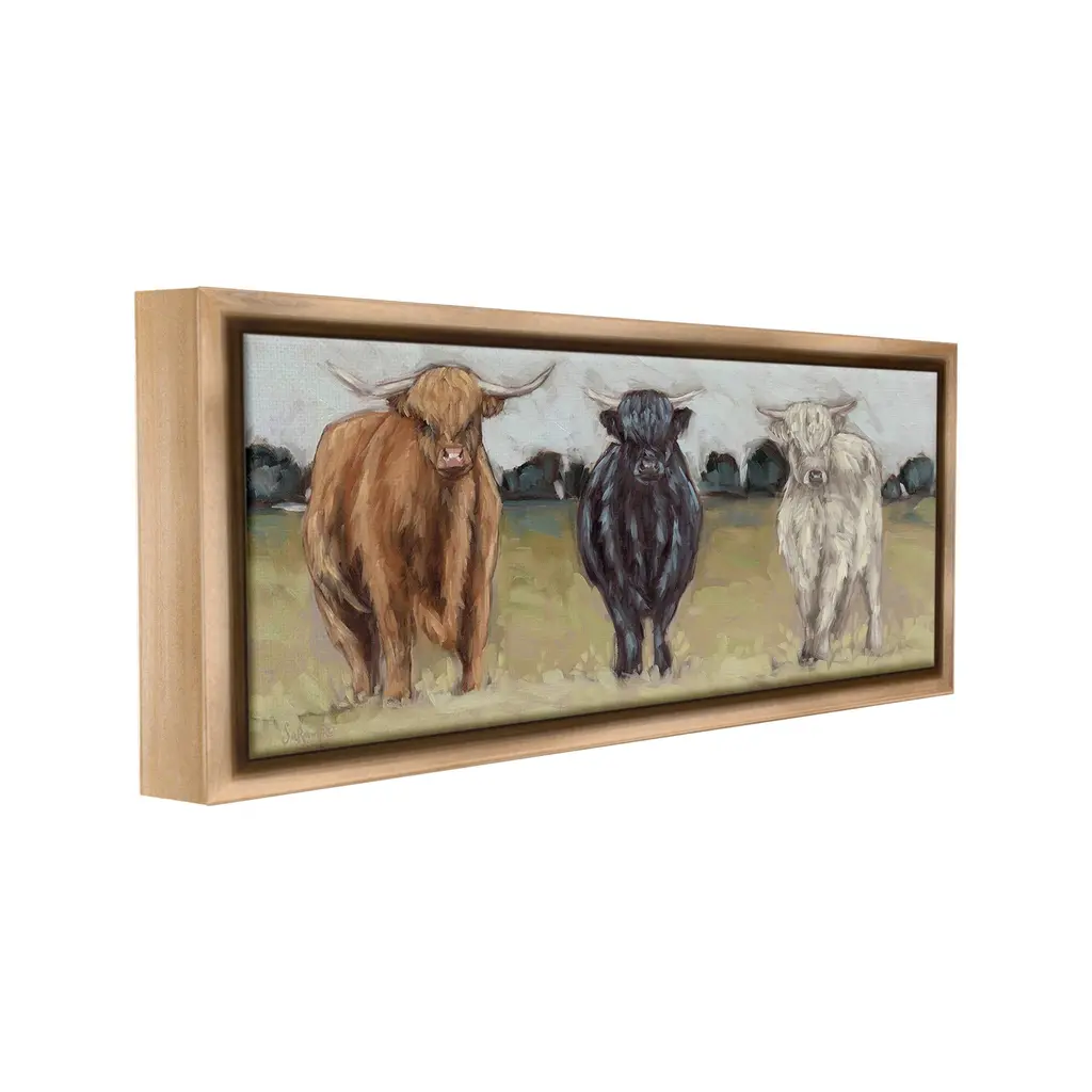Elevate your home or office to the next level with Stupell Framed Floating Canvas Wall Art. Our premium hand-stretched canvas is mounted securely into a sturdy lightweight frame. The museum-style gap between the wrapped canvas and the box frame gives the illusion of floating artwork. Stupell Wall Art is made in the USA.Features: Dimensions: 25 x 1.7 x 11 Frame, 24 x 1.5 x 10 Canvas ArtFloating Frame Canvas Products are available in sizes 25"x11" and 31"x14". All Floating Frame Canvas Products have a 1.7" Depth.Wall Art is Ready to Hang with Hardware Free Hanging. No Installation required. For Easy Set Up Lean or Layer Artwork on Shelf or Against Wall. Artwork is Permently Fixed into the Frame.Our elevated 1.7" Thick Floating Frame is the perfect complement to our canvas style Wall Art. We use only the highest quality inks in house with industry leading printing solutions. Canvas is hand stretched over a durable wood foundation and then mounted securly into a Modern Box Frame. Made in the USA.Artwork Relates To: Painting, Animal, Mammal, Abstract, Modern, Farm, Country, Cow, Cattle, Flower, DaisyDesign by Sara G. Designs