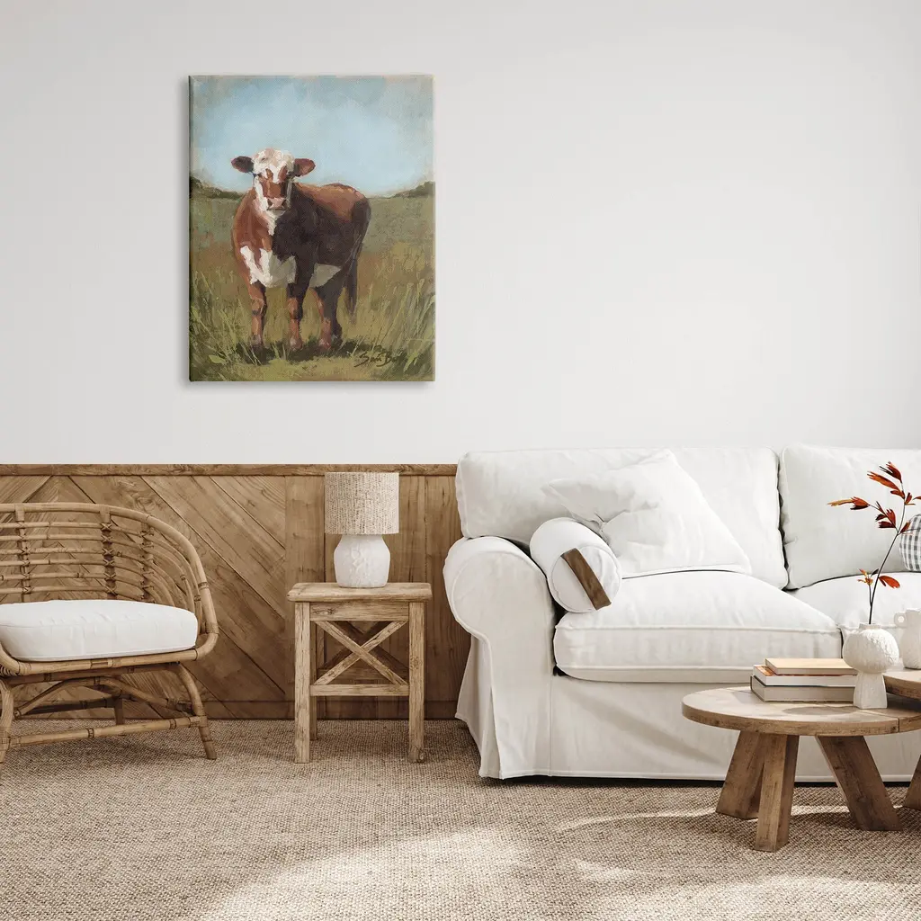 Proudly made in the USA, Our stretched canvas is created with the highest standards. We use only the highest quality inks and canvas on our in house Mimaki printers, and then hand cut and stretch each piece over a 1.5 inch thick wooden frame for hanging. The art comes ready to hang with no installation required.Features: Dimensions: 16 x 1.5 x 20 InchesStretched Canvas Sizes Include Standard: 16 x 1.5 x 20 Large: 20 x 1.5 x 30 X-Large: 30 x 1.5 x 40 Oversized: 36 x 1.5 x 48Wall Art is Ready to Hang - No Installation or Hardware Needed. For Easy Set Up Lean or Layer Artwork on Shelf or Against Wall.Our stretched canvas is created with the highest standards. We use only the highest quality inks and canvas on our in house Mimaki printers, and then hand cut and stretch each piece over a 1.5 inch thick wooden frame for hanging. Made In USA.Artwork Relates To: Cow, Cattle, Mammal, Animal, Calf, Outdoors, Countryside, Dairy Cow, RuralDesign by Sara Baker