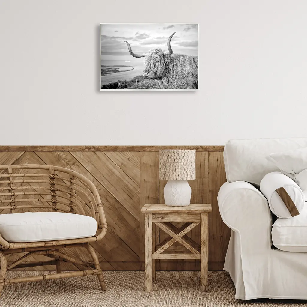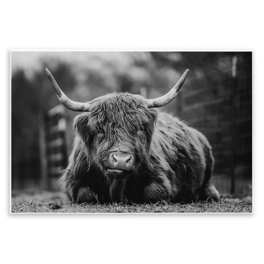 Our wall plaques start as high-quality lithograph prints mounted on durable 0.5-inch thick MDF wood. Each piece is hand finished and comes with a fresh layer of white foil on the sides to give it a crisp, clean look. Plaques arrive ready to hang without installation and come with removable plastic corners to keep them from damage in transit. Stupell Wall Art is made in the USA.Features: Dimensions: 15 x 0.5 x 10 InchesWall Plaque Product Sizes Include 15"x10" and 19"x13". All wall plaque products have a 0.5" Depth. Wall Art is Ready to Hang with Hardware Free Hanging. No installation required. For Easy Set Up Lean or Layer Artwork on Shelf or Against Wall.All of our wall plaques start off as high quality lithograph prints that are then mounted on durable 0.5 inch thick MDF wood. Each piece is hand finished and comes with a fresh layer of foil on the sides to give it a crisp clean look. Made In USA.Artwork Relates To: Animal, Bull, Mammal, Cattle, Longhorn, Cow, Nature, Landscape, Photography, MonochromeDesign by Jasper Huish