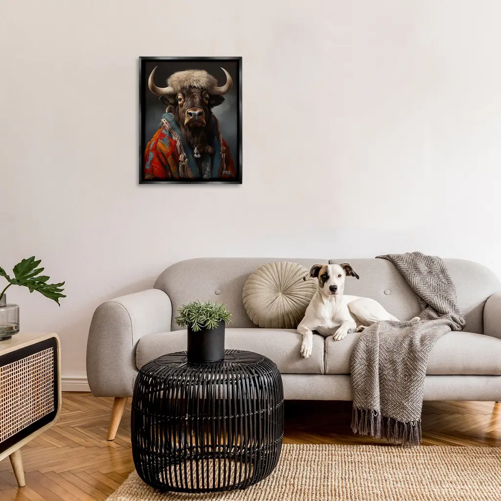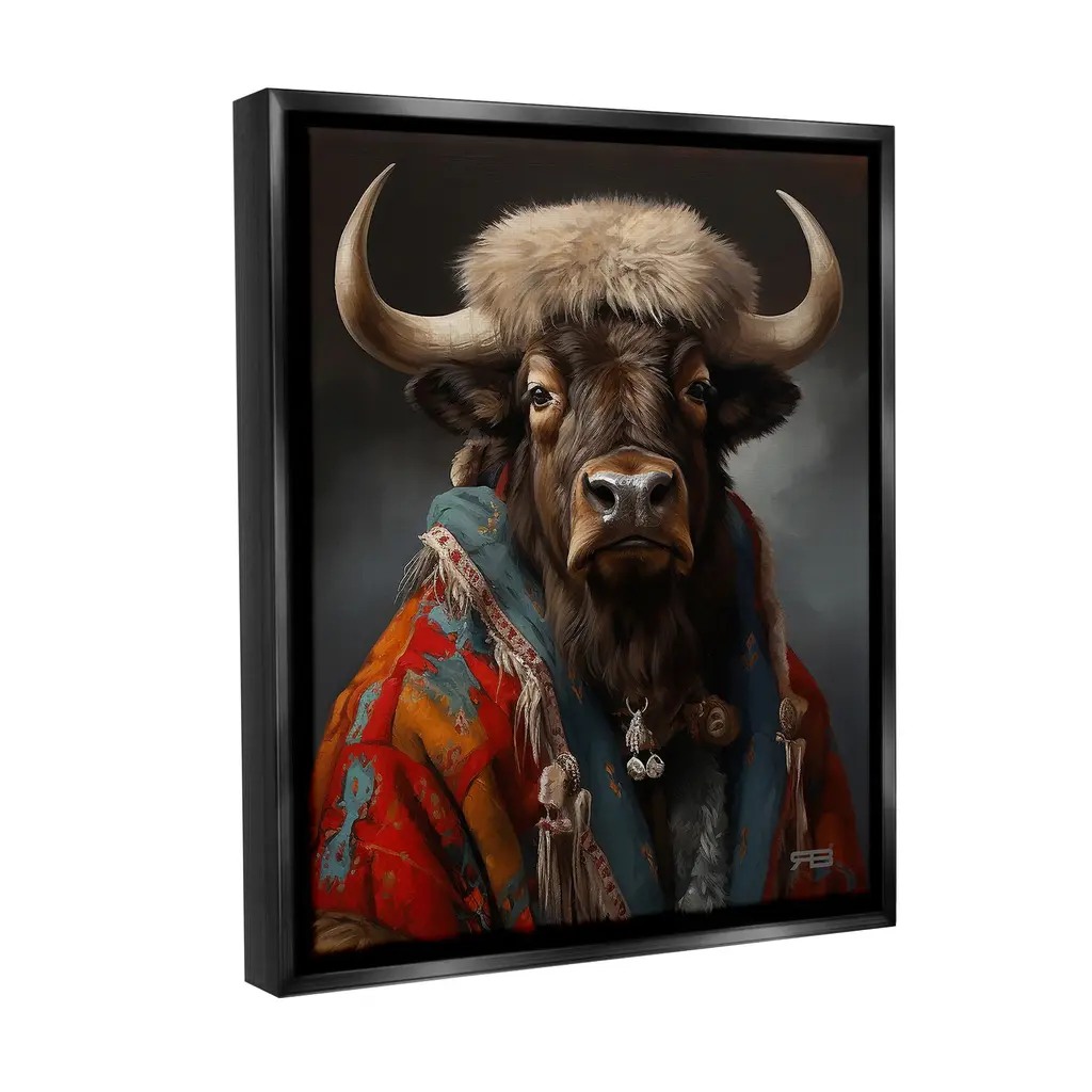 Elevate your home or office to the next level with Stupell Framed Floating Canvas Wall Art. Our premium hand-stretched canvas is mounted securely into a sturdy lightweight frame. The museum-style gap between the wrapped canvas and the box frame gives the illusion of floating artwork. Stupell Wall Art is made in the USA.Features: Dimensions: 17 x 1.7 x 21 Frame, 16 x 1.5 x 20 Canvas ArtFloating Frame Canvas Products are available in sizes 17"x21" and 25"x31". All Floating Frame Canvas Products have a 1.7" Depth.Wall Art is Ready to Hang with Hardware Free Hanging. No Installation required. For Easy Set Up Lean or Layer Artwork on Shelf or Against Wall. Artwork is Permently Fixed into the Frame.Our elevated 1.7" Thick Floating Frame is the perfect complement to our canvas style Wall Art. We use only the highest quality inks in house with industry leading printing solutions. Canvas is hand stretched over a durable wood foundation and then mounted securly into a Modern Box Frame. Made in the USA.Artwork Relates To: Animal, Bull, Mammal, Wildlife, Cattle, Ox, Yak, World CulturesDesign by RB