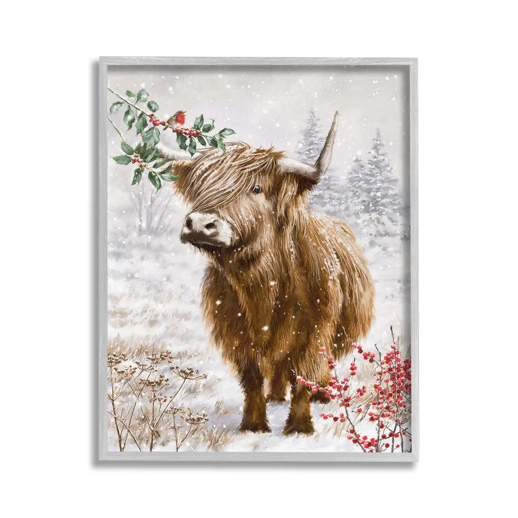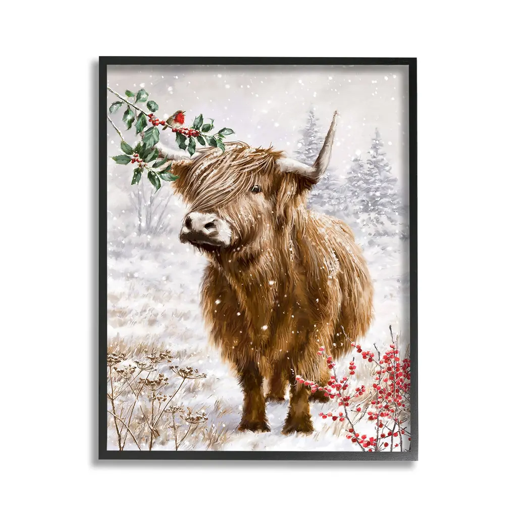 Add dimension to any room with our textured Framed Giclee Artwork. Our framed artwork is securely mounted into a 1.5-inch thick wood grain frame and ready to hang. Frames are available in three alluring styles: black, gray farmhouse and white. In addition, you should check out our oversized options if you want a statement piece. Stupell Wall Art is made in the USA.Features: Dimensions: 11 x 1.5 x 14 FramedFramed Giclee Products are available in the sizes 11"x14", 16"x20" or 24"x30". All Framed Giclee Products have a 1.5" Depth. Wall Art is Ready to Hang with Hardware Free Hanging. No installation required. For Easy Set Up Lean or Layer Artwork on Shelf or Against Wall.Our giclée prints are carefully mounted on a durable MDF backing, and then perfectly finished in a 1.5 inch thick woodgrain frame. Mounted frame colors include black, gray farmhouse and white. Made In USA.Artwork Relates To: Animal, Cattle, Mammal, Cow, Winter, Holiday, Landscape, Snow, NatureDesign by Ian Saxton
