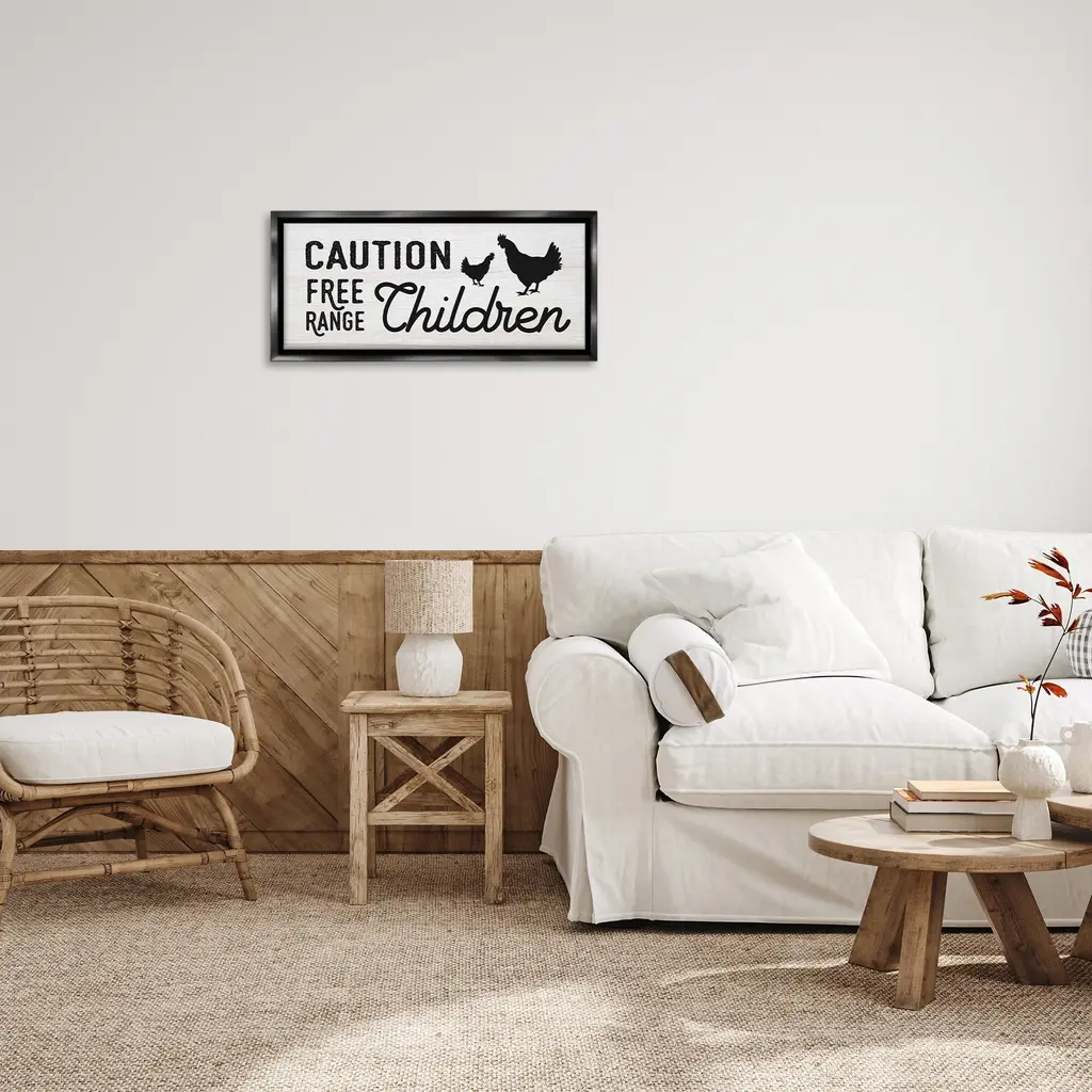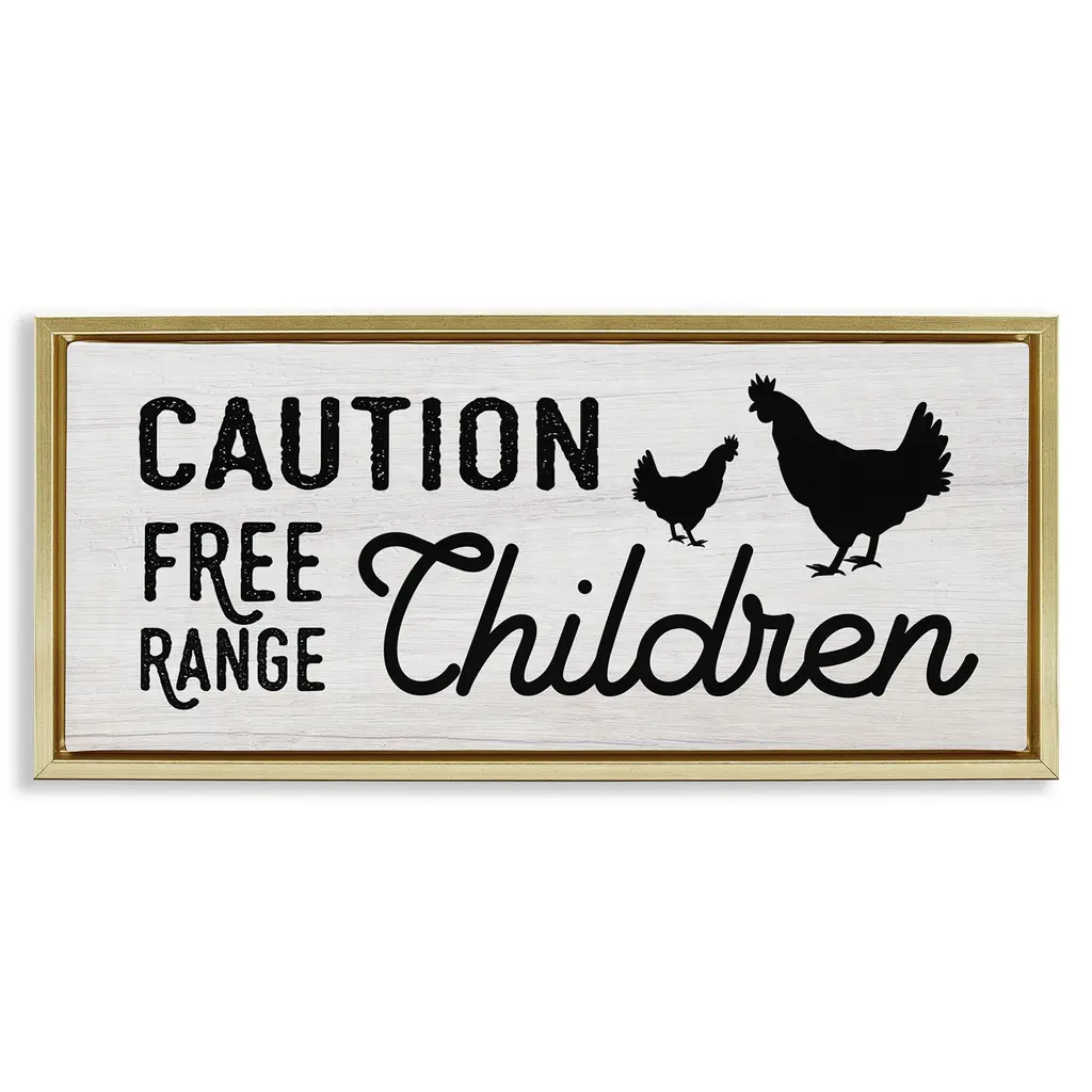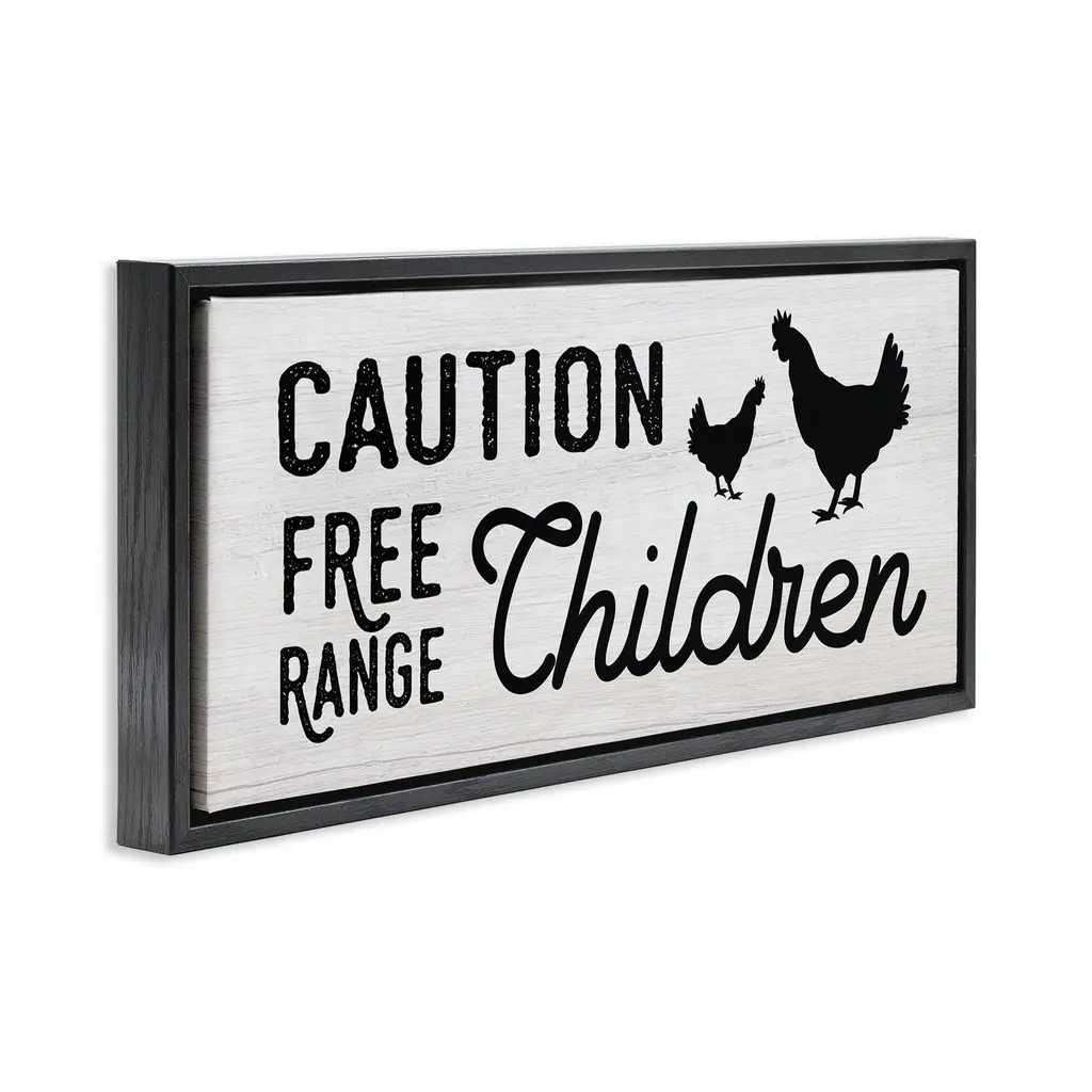 Stupell Caution Free Range Children Framed Floater Canvas Wall Art Design By Daphne Polselli - 25 X 11 - Black