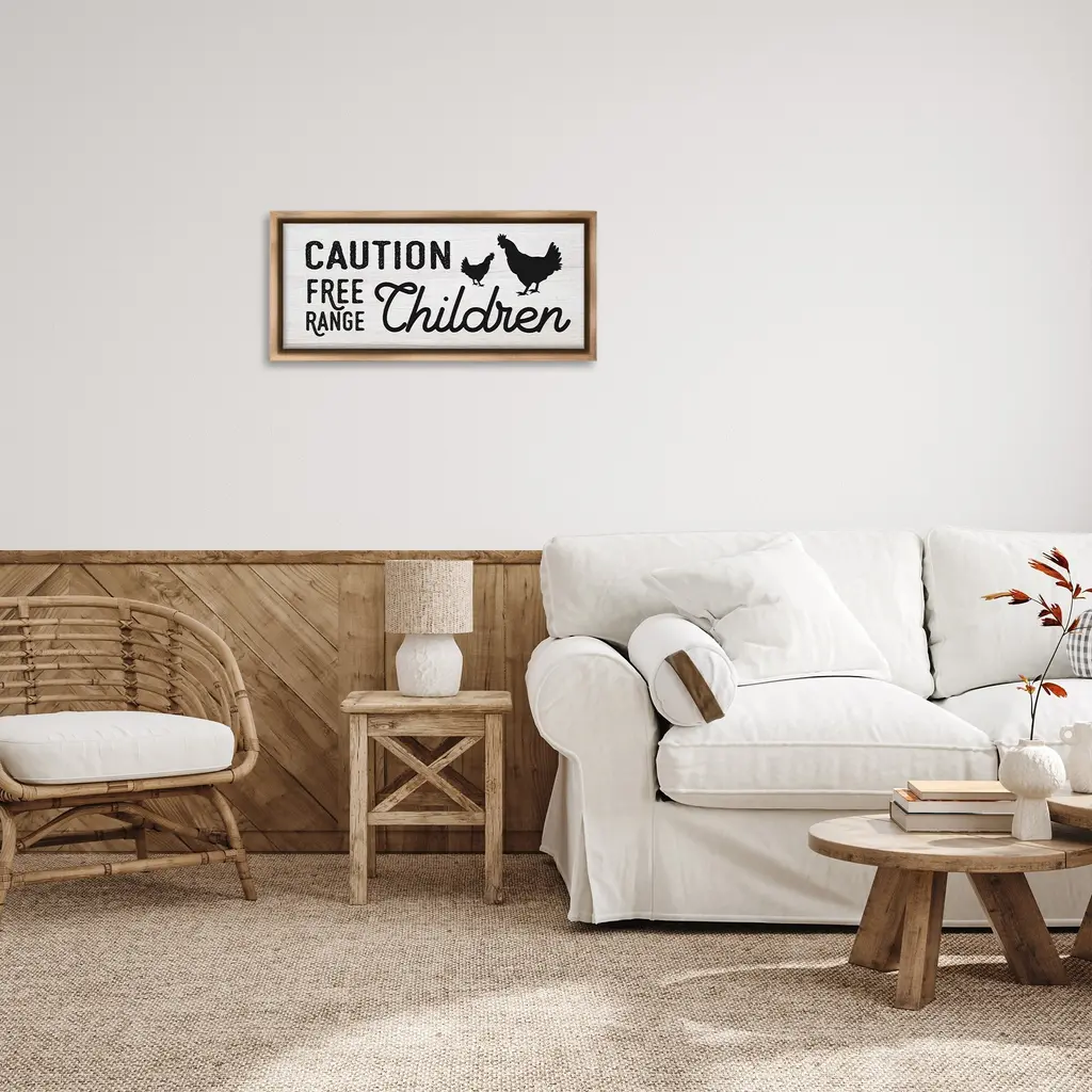 Stupell Caution Free Range Children Framed Floater Canvas Wall Art Design By Daphne Polselli - 25 X 11 - Brown
