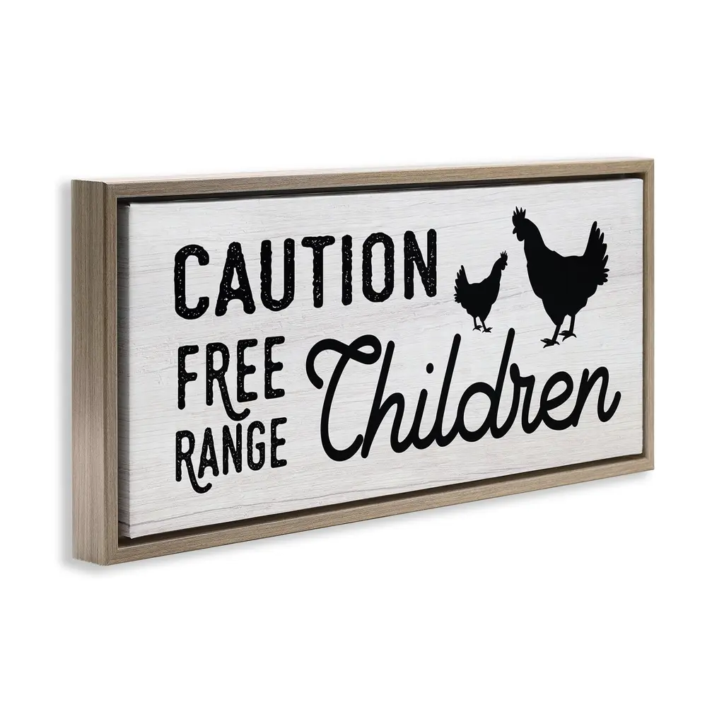 Stupell Caution Free Range Children Framed Floater Canvas Wall Art Design By Daphne Polselli - 31 X 14 - Brown