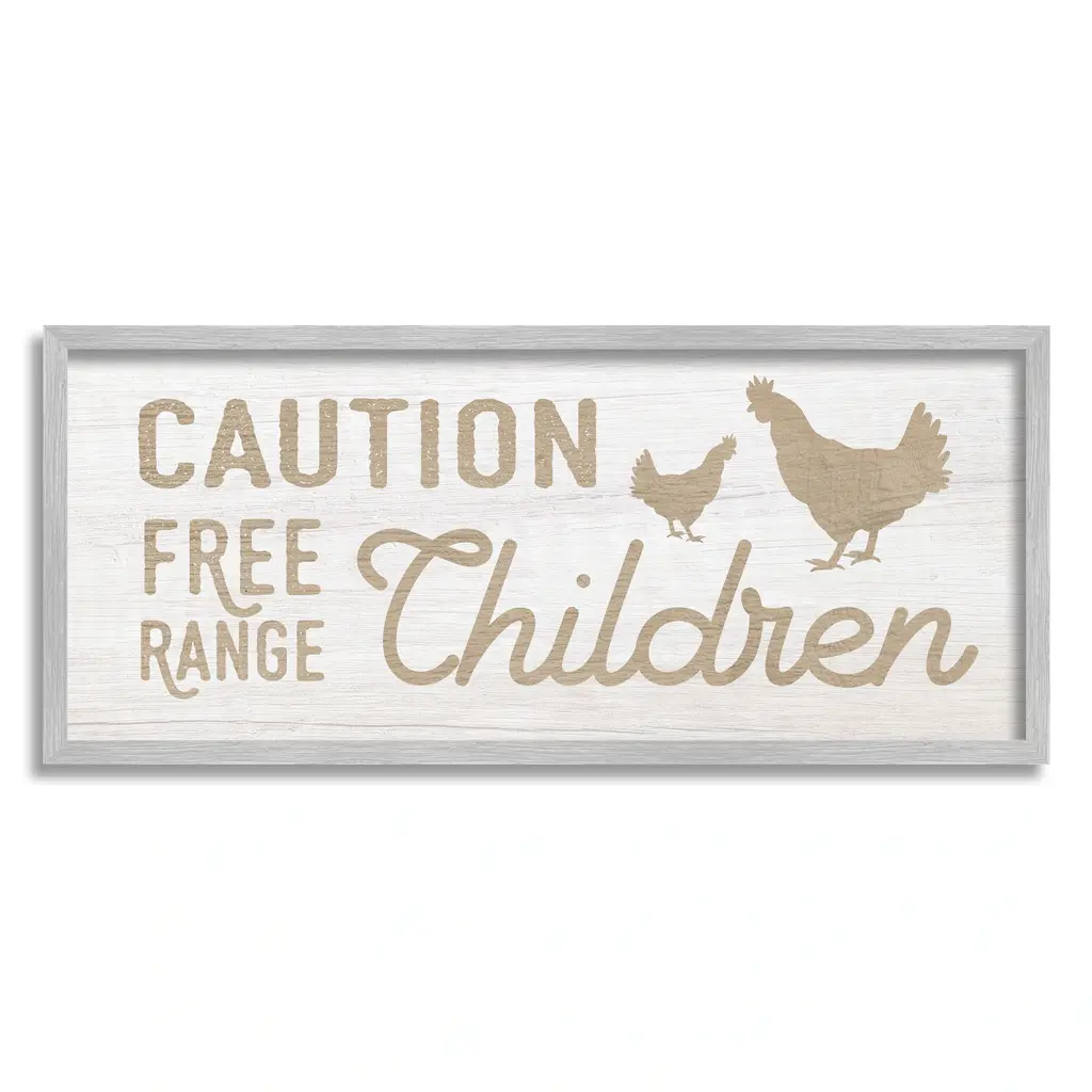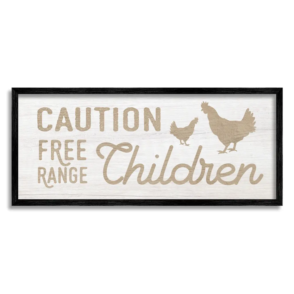Stupell Caution Free Range Children Sign Funny Farm Chickens Framed Wall Art - 30 X 13 - White