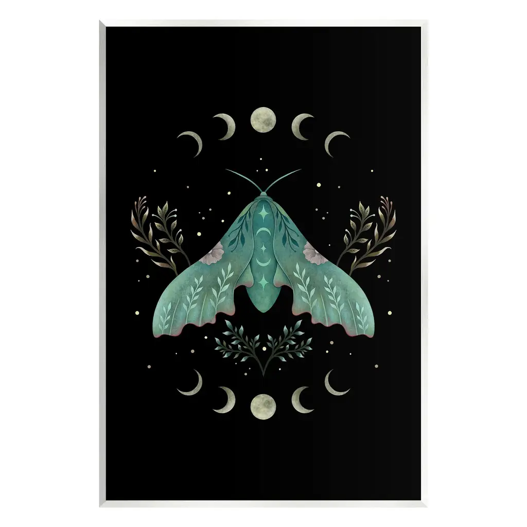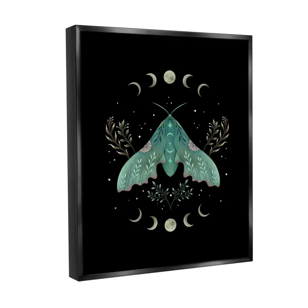 Elevate your home or office to the next level with Stupell Framed Floating Canvas Wall Art. Our premium hand-stretched canvas is mounted securely into a sturdy lightweight frame. The museum-style gap between the wrapped canvas and the box frame gives the illusion of floating artwork. Stupell Wall Art is made in the USA.Features: Dimensions: 17 x 1.7 x 21 Frame, 16 x 1.5 x 20 Canvas ArtFloating Frame Canvas Products are available in sizes 17"x21" and 25"x31". All Floating Frame Canvas Products have a 1.7" Depth.Wall Art is Ready to Hang with Hardware Free Hanging. No Installation required. For Easy Set Up Lean or Layer Artwork on Shelf or Against Wall. Artwork is Permently Fixed into the Frame.Our elevated 1.7" Thick Floating Frame is the perfect complement to our canvas style Wall Art. We use only the highest quality inks in house with industry leading printing solutions. Canvas is hand stretched over a durable wood foundation and then mounted securly into a Modern Box Frame. Made in the USA.Artwork Relates To: Plant, Animal, Butterfly, Insect, Invertebrate, Astronomy, Moon, Nature, Night, Moth, Pattern, Astral, Celestial, Flower, FloralDesign by Episodic Drawings