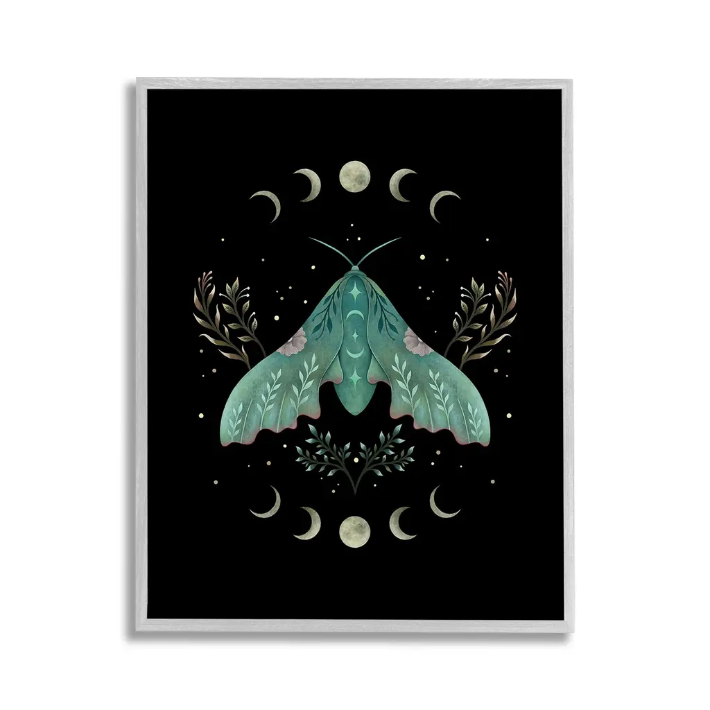 Add dimension to any room with our textured Framed Giclee Artwork. Our framed artwork is securely mounted into a 1.5-inch thick wood grain frame and ready to hang. Frames are available in three alluring styles: black, gray farmhouse and white. In addition, you should check out our oversized options if you want a statement piece. Stupell Wall Art is made in the USA.Features: Dimensions: 11 x 1.5 x 14 FramedFramed Giclee Products are available in the sizes 11"x14", 16"x20" or 24"x30". All Framed Giclee Products have a 1.5" Depth. Wall Art is Ready to Hang with Hardware Free Hanging. No installation required. For Easy Set Up Lean or Layer Artwork on Shelf or Against Wall.Our giclée prints are carefully mounted on a durable MDF backing, and then perfectly finished in a 1.5 inch thick woodgrain frame. Mounted frame colors include black, gray farmhouse and white. Made In USA.Artwork Relates To: Plant, Animal, Butterfly, Insect, Invertebrate, Astronomy, Moon, Nature, Night, Moth, Pattern, Astral, Celestial, Flower, FloralDesign by Episodic Drawings