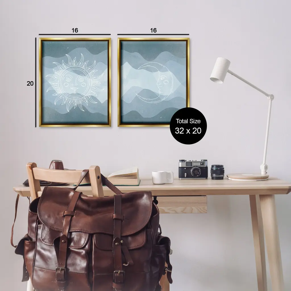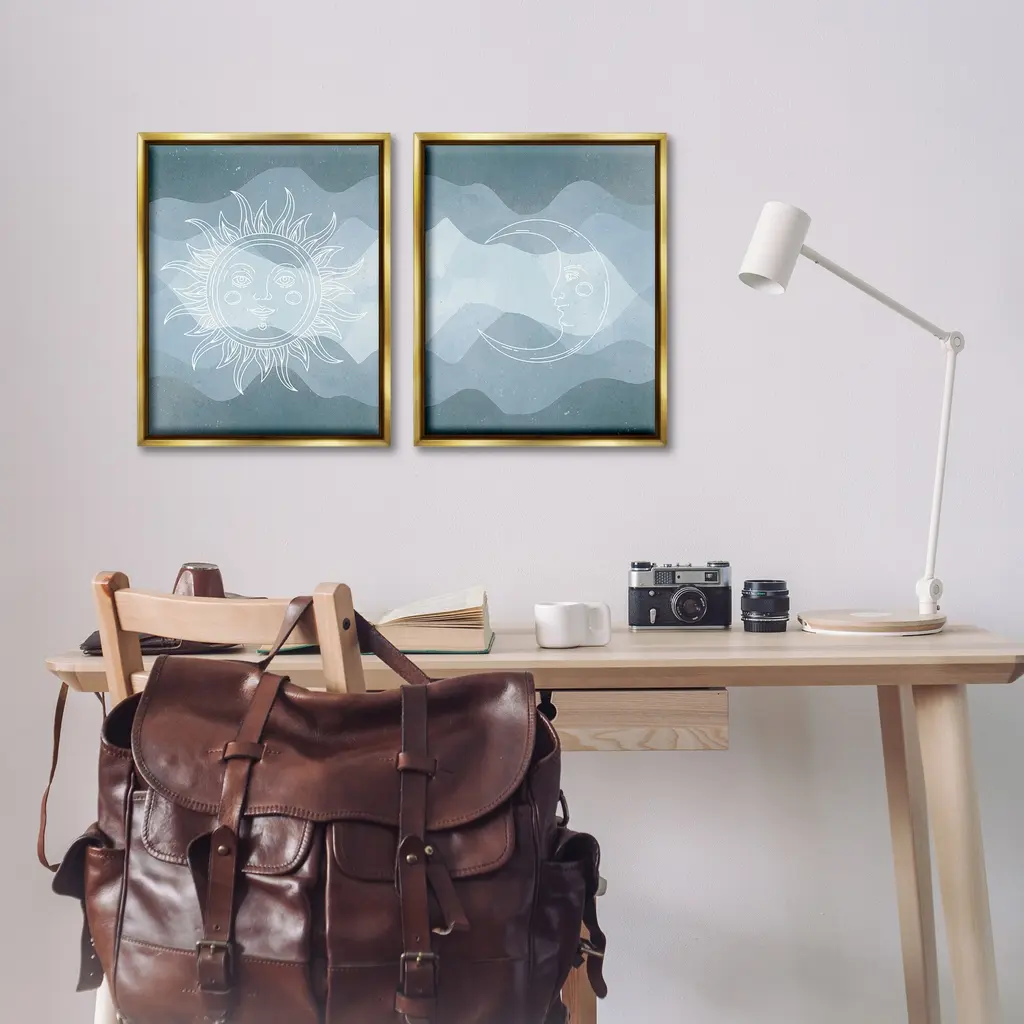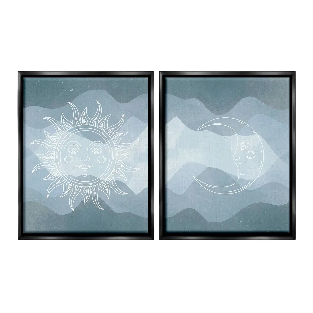 Elevate your home or office to the next level with Stupell Framed Floating Canvas Wall Art. Our premium hand-stretched canvas is mounted securely into a sturdy lightweight frame. The museum-style gap between the wrapped canvas and the box frame gives the illusion of floating artwork. Stupell Wall Art is made in the USA.Features: Dimensions: 2 Piece Set, Each Frame is 17 x 1.7 x 21Two Piece Floater Framed Canvas are available as 17x21 or 25x31 Panels. All Floater Frame Products have a 1.7" Depth.Wall Art is Ready to Hang with Hardware Free Hanging. No Installation required. For Easy Set Up Lean or Layer Artwork on Shelf or Against Wall. Artwork is Permently Fixed into the Frame.Our elevated 1.7" Thick Floating Frame is the perfect complement to our canvas style Wall Art. We use only the highest quality inks in house with industry leading printing solutions. Canvas is hand stretched over a durable wood foundation and then mounted securly into a Modern Box Frame. Made in the USA.Artwork Relates To: Sun, Moon, Nature, Abstract, Boho, Southwestern, Modern, Pattern, Geometric, Celestial, AstralDesign by Lil' Rue