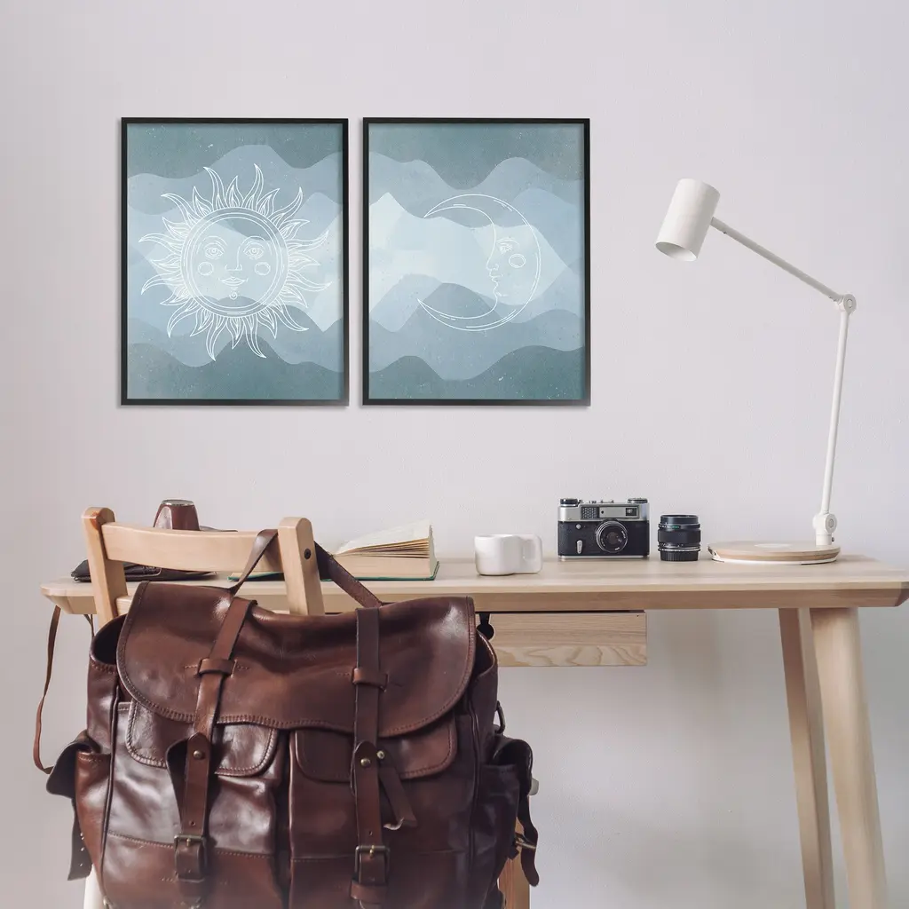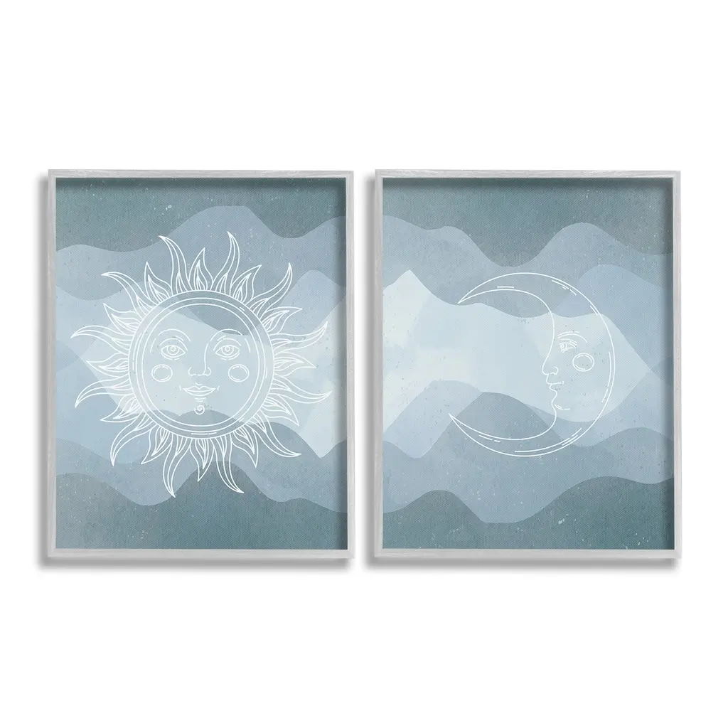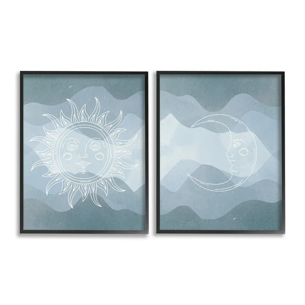 Fill any space in your home or office with our Framed Wall Art Sets. Our framed artwork is securely mounted into a 1.5-inch thick wood grain frame and ready to hang. Frames are available in three alluring styles: black, gray farmhouse and white. Stupell Wall Art is made in the USA.Features: Dimensions: 2 Piece Set, Each Panel is 11 x 1.5 x 14 FramedTwo Piece Framed Giclee Sets are available as 11"x14", 16"x20" or 24"x30" Panels. All Framed Giclee Products have a 1.5" Depth.Wall Art is Ready to Hang with Hardware Free Hanging. No installation required. For Easy Set Up Lean or Layer Artwork on Shelf or Against Wall.Curated Wall Art Sets make it easy for you complete the theme for any room. Our giclée prints are carefully mounted on a durable MDF backing, and then perfectly finished in a 1.5 inch thick woodgrain frame. Mounted frame colors include black, gray farmhouse and white. Made In USA.Artwork Relates To: Sun, Moon, Nature, Abstract, Boho, Southwestern, Modern, Pattern, Geometric, Celestial, AstralDesign by Lil' Rue