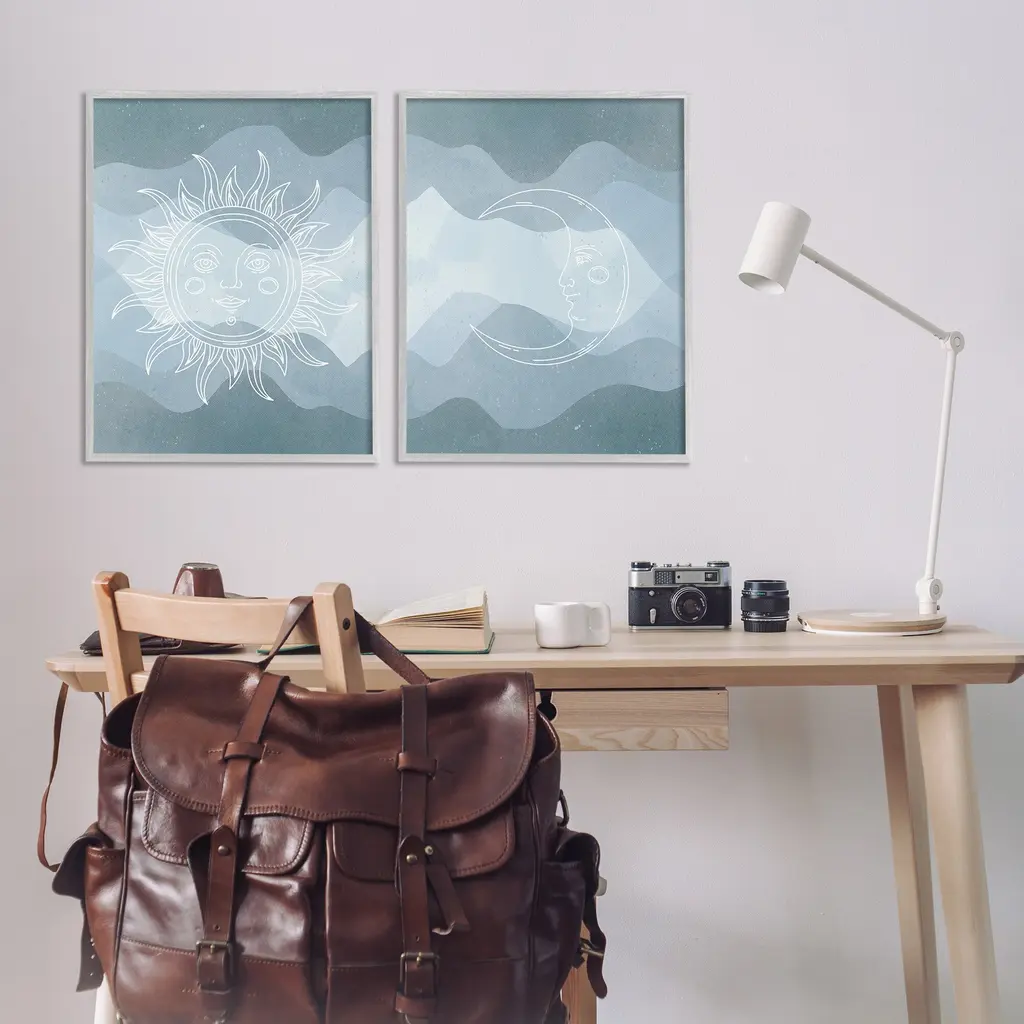 Fill any space in your home or office with our Framed Wall Art Sets. Our framed artwork is securely mounted into a 1.5-inch thick wood grain frame and ready to hang. Frames are available in three alluring styles: black, gray farmhouse and white. Stupell Wall Art is made in the USA.Features: Dimensions: 2 Piece Set, Each Panel is 11 x 1.5 x 14 FramedTwo Piece Framed Giclee Sets are available as 11"x14", 16"x20" or 24"x30" Panels. All Framed Giclee Products have a 1.5" Depth.Wall Art is Ready to Hang with Hardware Free Hanging. No installation required. For Easy Set Up Lean or Layer Artwork on Shelf or Against Wall.Curated Wall Art Sets make it easy for you complete the theme for any room. Our giclée prints are carefully mounted on a durable MDF backing, and then perfectly finished in a 1.5 inch thick woodgrain frame. Mounted frame colors include black, gray farmhouse and white. Made In USA.Artwork Relates To: Sun, Moon, Nature, Abstract, Boho, Southwestern, Modern, Pattern, Geometric, Celestial, AstralDesign by Lil' Rue