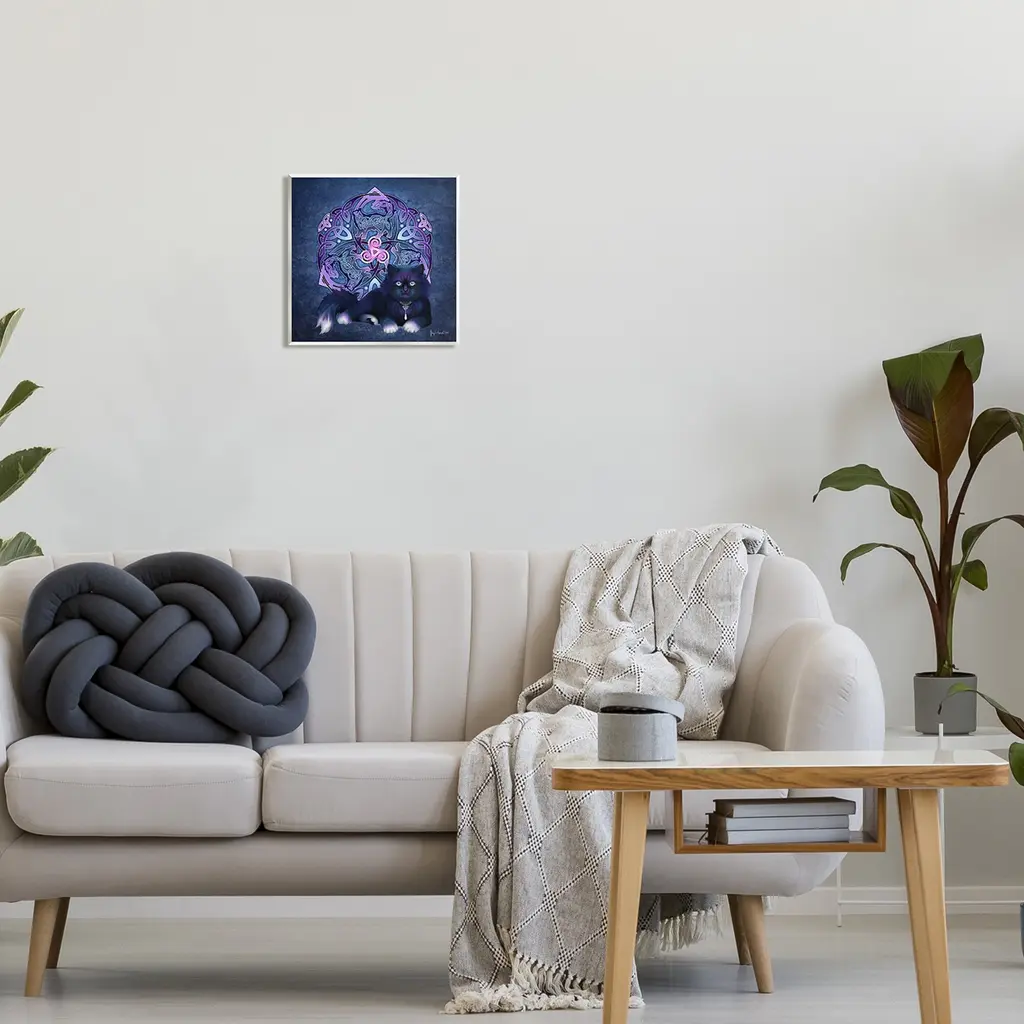 Our wall plaques start as high-quality lithograph prints mounted on durable 0.5-inch thick MDF wood. Each piece is hand finished and comes with a fresh layer of white foil on the sides to give it a crisp, clean look. Plaques arrive ready to hang without installation and come with removable plastic corners to keep them from damage in transit. Stupell Industries Wall Art is made in the USA.Features: Dimensions: 12 x 0.5 x 12 InchesWall Art is Ready to Hang with Hardware Free Hanging. No installation required. For Easy Set Up Lean or Layer Artwork on Shelf or Against Wall.All of our wall plaques start off as high quality lithograph prints that are then mounted on durable 0.5 inch thick MDF wood. Each piece is hand finished and comes with a fresh layer of foil on the sides to give it a crisp clean look. Made In USA.Artwork Relates To: Pattern, Animal, Cat, Mammal, Pet, Purple, Black Cat, Kitten, FractalDesign by Brigid Ashwood