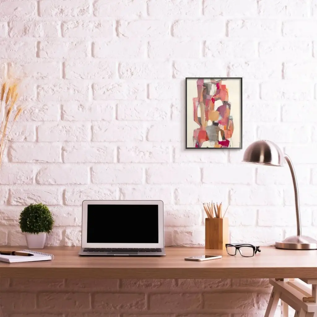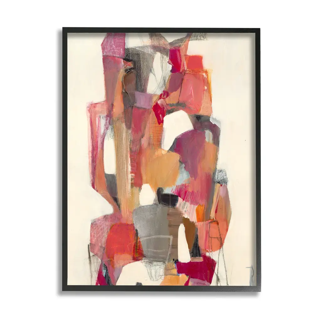 Stupell Centered Geometric Shapes Abstract Red Orange Framed Wall Art - 11 X 14 - Black