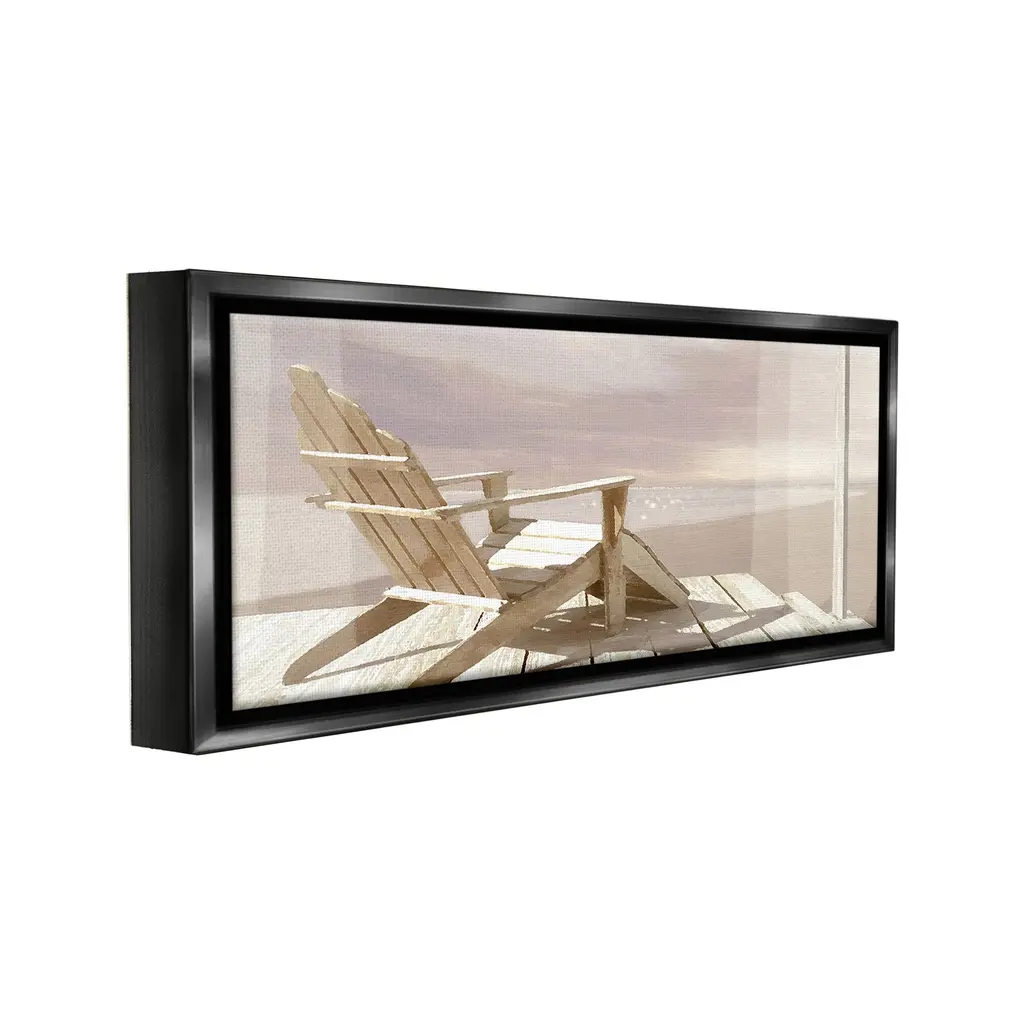 Elevate your home or office to the next level with Stupell Framed Floating Canvas Wall Art. Our premium hand-stretched canvas is mounted securely into a sturdy lightweight frame. The museum-style gap between the wrapped canvas and the box frame gives the illusion of floating artwork. Stupell Wall Art is made in the USA.Features: Dimensions: 25 x 1.7 x 11 Frame, 24 x 1.5 x 10 Canvas ArtFloating Frame Canvas Products are available in sizes 25"x11" and 31"x14". All Floating Frame Canvas Products have a 1.7" Depth.Wall Art is Ready to Hang with Hardware Free Hanging. No Installation required. For Easy Set Up Lean or Layer Artwork on Shelf or Against Wall. Artwork is Permently Fixed into the Frame.Our elevated 1.7" Thick Floating Frame is the perfect complement to our canvas style Wall Art. We use only the highest quality inks in house with industry leading printing solutions. Canvas is hand stretched over a durable wood foundation and then mounted securly into a Modern Box Frame. Made in the USA.Artwork Relates To: Beach, Coast, Sea, Shoreline, Water, Scenery, Landscape, Ocean, ChairDesign by Noah Bay