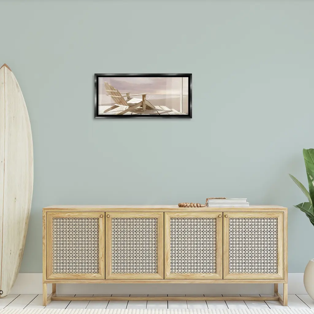 Elevate your home or office to the next level with Stupell Framed Floating Canvas Wall Art. Our premium hand-stretched canvas is mounted securely into a sturdy lightweight frame. The museum-style gap between the wrapped canvas and the box frame gives the illusion of floating artwork. Stupell Wall Art is made in the USA.Features: Dimensions: 25 x 1.7 x 11 Frame, 24 x 1.5 x 10 Canvas ArtFloating Frame Canvas Products are available in sizes 25"x11" and 31"x14". All Floating Frame Canvas Products have a 1.7" Depth.Wall Art is Ready to Hang with Hardware Free Hanging. No Installation required. For Easy Set Up Lean or Layer Artwork on Shelf or Against Wall. Artwork is Permently Fixed into the Frame.Our elevated 1.7" Thick Floating Frame is the perfect complement to our canvas style Wall Art. We use only the highest quality inks in house with industry leading printing solutions. Canvas is hand stretched over a durable wood foundation and then mounted securly into a Modern Box Frame. Made in the USA.Artwork Relates To: Beach, Coast, Sea, Shoreline, Water, Scenery, Landscape, Ocean, ChairDesign by Noah Bay