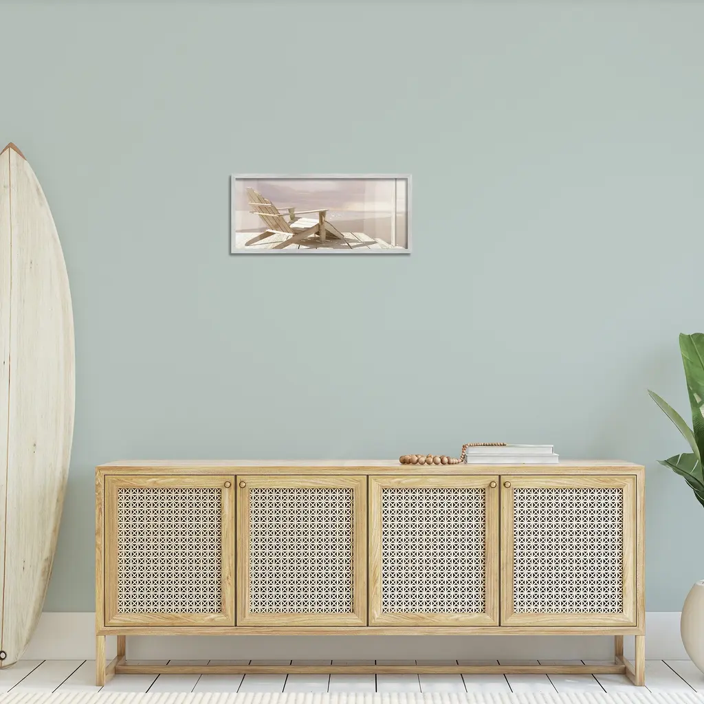 Add dimension to any room with our textured Framed Giclee Artwork. Our framed artwork is securely mounted into a 1.5-inch thick wood grain frame and ready to hang. Frames are available in three alluring styles: black, gray farmhouse and white. In addition, you should check out our oversized options if you want a statement piece. Stupell Wall Art is made in the USA.Features: Dimensions: 24 x 1.5 x 10 FramedFramed Giclee Product Sizes include 24"x10" and 30"x13". All Framed Giclee products have a 1.5" Depth.Wall Art is Ready to Hang with Hardware Free Hanging. No installation required. For Easy Set Up Lean or Layer Artwork on Shelf or Against Wall.Our giclée prints are carefully mounted on a durable MDF backing, and then perfectly finished in a 1.5 inch thick woodgrain frame. Mounted frame colors include black, gray farmhouse and white. Made In USA.Artwork Relates To: Beach, Coast, Sea, Shoreline, Water, Scenery, Landscape, Ocean, ChairDesign by Noah Bay