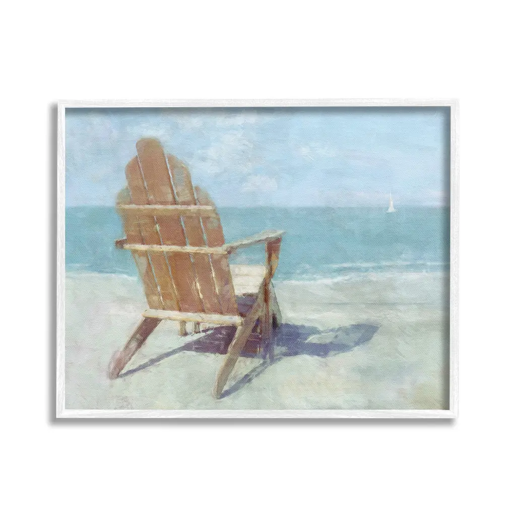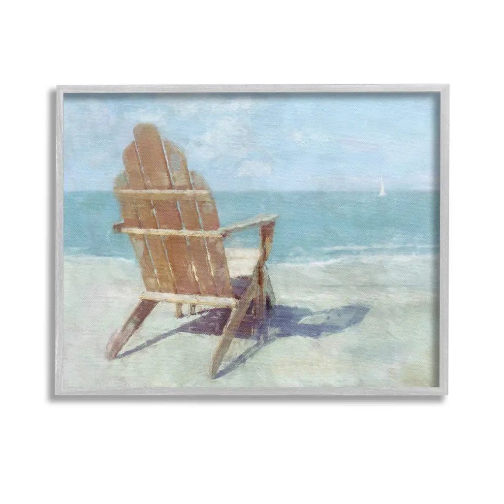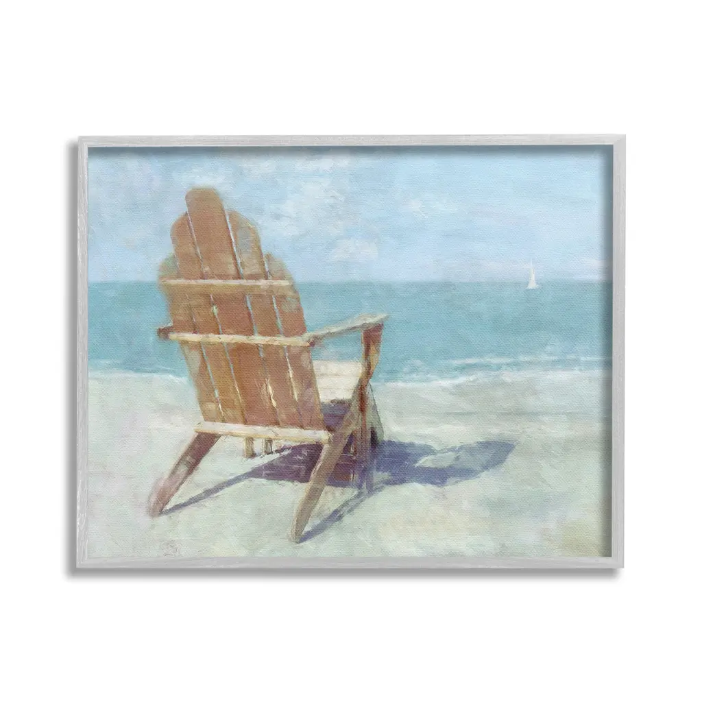 Add dimension to any room with our textured Framed Giclee Artwork. Our framed artwork is securely mounted into a 1.5-inch thick wood grain frame and ready to hang. Frames are available in three alluring styles: black, gray farmhouse and white. In addition, you should check out our oversized options if you want a statement piece. Stupell Wall Art is made in the USA.Features: Dimensions: 14 x 1.5 x 11 FramedFramed Giclee Products are available in the sizes 14"x11", 20"x16" or 30"x24". All Framed Giclee Products have a 1.5" Depth. Wall Art is Ready to Hang with Hardware Free Hanging. No installation required. For Easy Set Up Lean or Layer Artwork on Shelf or Against Wall.Our giclée prints are carefully mounted on a durable MDF backing, and then perfectly finished in a 1.5 inch thick woodgrain frame. Mounted frame colors include black, gray farmhouse and white. Made In USA.Artwork Relates To: Beach, Coast, Sea, Shoreline, Water, Scenery, Sky, Landscape, Horizon, Sea Waves, Nautical, Beach Chair, SailboatDesign by Noah Bay